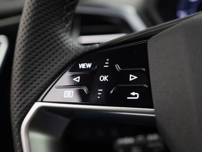 • Vierspaaks lederen sportstuur, afgevlakt aan de boven- en onderzijde, multifunctioneel, met stuurpaddels (2FS)