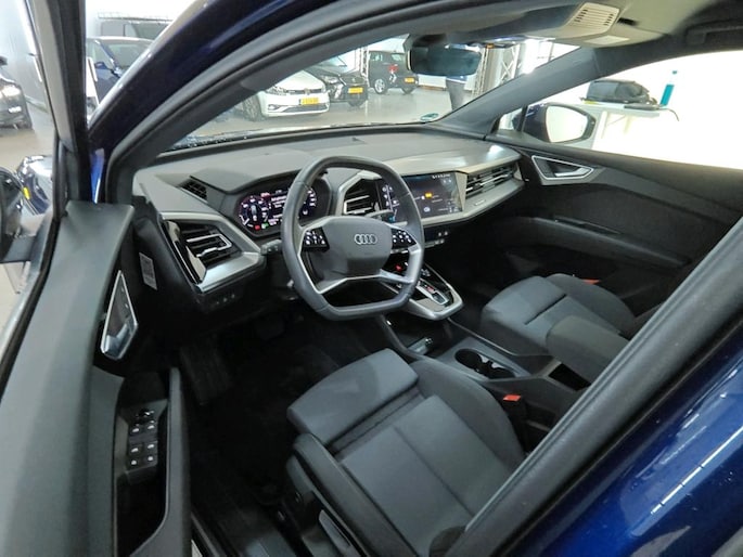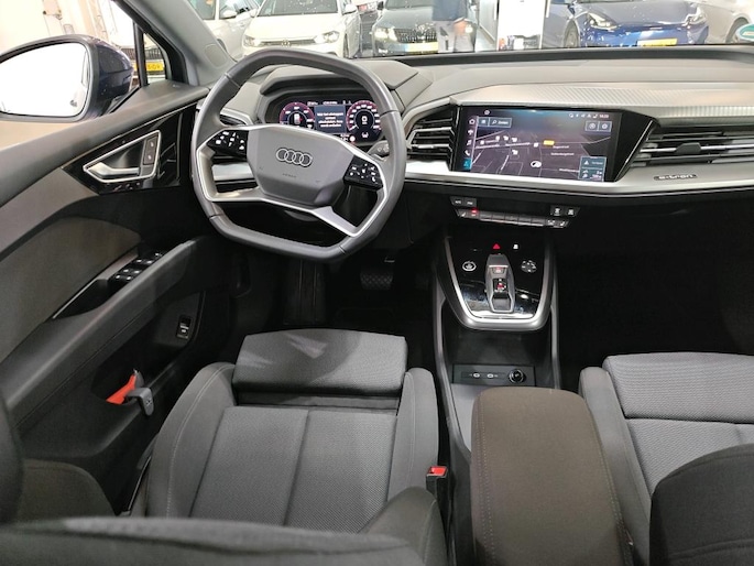 Pas de interface van jouw cockpit moeiteloos aan. Het is mogelijk door het digitale dashboard in deze auto. Veilig en comfortabel rijden wordt nog eens versterkt door Connected Services, zodat je diverse vitale functies van de auto altijd kunt checken in de app. Het audio-installatiesysteem is gecombineerd met het full map navigatiesysteem en geeft je de keus om onderweg te luisteren wat je wilt. Verkeersinfo, je favoriete albums en radioprogramma's, podcasts, luisterboeken... zeg het maar. Deze auto heeft ook bluetooth aan boord. Naast de routeinformatie van het gekoppelde full map navigatiesysteem kan je muziek via het audio-installatiesysteem ook online beluisteren dankzij bluetooth. Het comfort wordt verhoogd door de aanwezige automatische airconditioning. Boem is ho? Niet bij deze Audi Q4 e-tron. De piepjes van de parkeersensoren waarschuwen je op tijd voor obstakels. De uitrusting van deze auto is met WIFI-hotspot, DAB ontvangst, cruise control en automatisch dimmende buitenspiegels behoorlijk compleet.