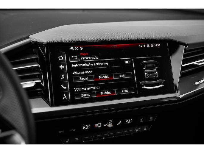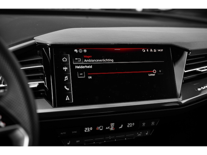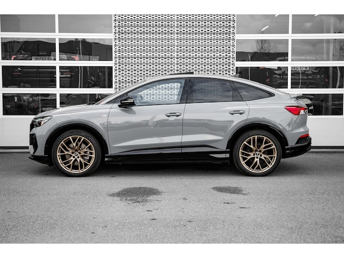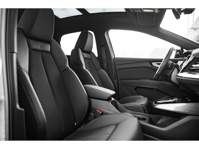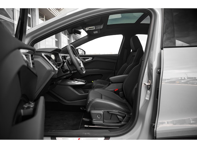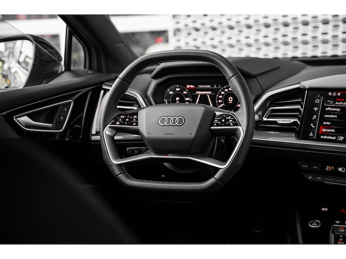 Intelligente technologie. Geen emissies en een fantastisch rijgedrag. Welkom in de Audi Q4 Sportback e-tron. Gas geven is er met de elektromotor niet meer bij. Stil snelheid maken wel! Mag het een beetje exclusief en sportief? Mooi, want deze is uitgevoerd met S-Line styling. Een krachtige motor geeft deze auto zijn sportieve prestaties. Deze Audi Q4 Sportback e-tron legt bestuurder én bijrijder compleet in de watten met de verwarmbare voorstoelen. Pittig rijden wordt nog comfortabeler dankzij de fraaie sportstoelen. Een handige voorziening op deze auto is de elektrische achterklep die u op afstand kunt openen. Maximaal daglicht, royaal uitzicht: het glazen panoramadak zorgt ervoor! Met matrix LED-verlichting rijdt u eigenlijk altijd met groot licht, dus maximaal zicht. Toch is verblinden er niet bij, want het systeem regelt de verlichting zo dat tegenliggers er geen last van hebben. Bij de rijke uitrusting horen ook 21 inch lichtmetalen velgen, sportonderstel, adaptief dempingsysteem, extra getint glas, neerklapbare achterbank en LED-achterlichten. Het systeem controleert alle belangrijke functies en geeft die perfect weer via het digitale dashboard. Bij het inparkeren laat de achteruitrijcamera precies zien hoeveel meter... decimeter... centimeter ruimte er nog is! Adaptive cruise control is veilig en comfortabel. De snelheidsregelaar houdt automatisch afstand tot het voertuig dat voor u rijdt. De ingebouwde file assistent is een echte helper als het vaststaat onderweg. Het systeem meet ruimte tot de auto vóór u permanent en activeert zelfs de remmen als uw voorligger stopt. Een technisch en comfortvergrotend hoogstandje is de elektrisch inklapbare trekhaak. Ook connected drive services, full map navigatiesysteem, achteropkomend verkeer waarschuwing, automatische airconditioning, sportstuur met schakelpaddels en DAB ontvangst zijn aan boord. Tijdens de rit wordt u als bestuurder ondersteund door verschillende systemen die de weg en uw omgeving in de gaten houden. Dashboardinfo checken zonder uw ogen van de weg te halen? Dat kan met de head-up display. Onderweg fungeert de verkeersbord-detectie als het ware als uw bijrijder en attendeert u op de verkeersborden langs de weg. Het Lane-keeping systeem let constant op en waarschuwt of corrigeert als u onoplettend over de lijnen van de rijstrook gaat. De auto is ook uitgerust met dodehoekdetectie en frontale botsbescherming. Wanneer wilt u een proefrit maken? Neem contact op en we maken een afspraak voor een muisstille rit in deze elektrische droomauto!