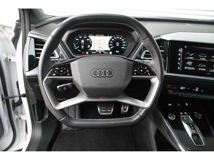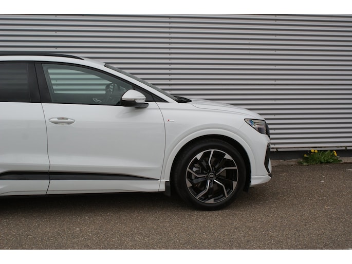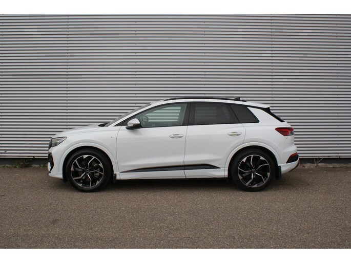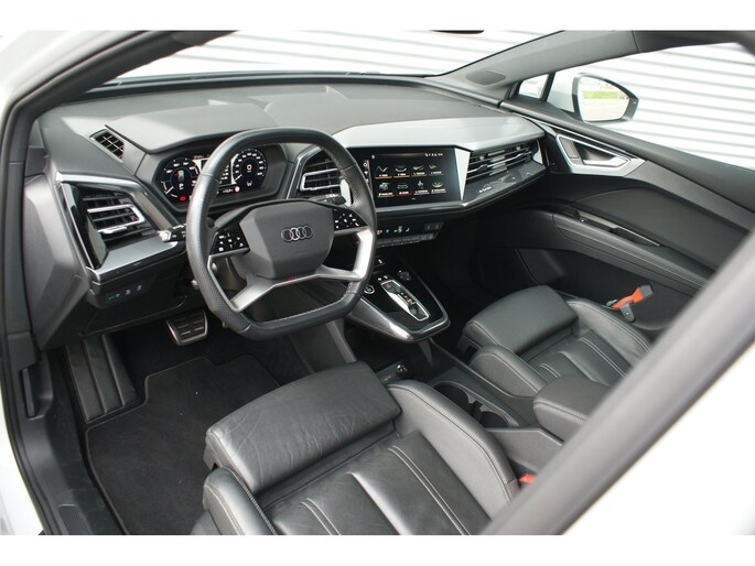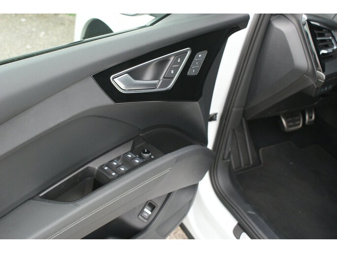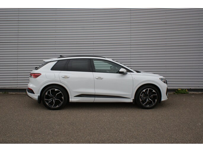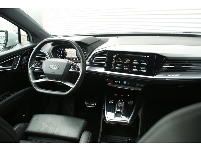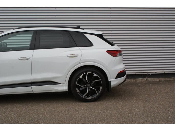 Uitmuntende prestaties, dynamische rijeigenschappen en bakken vol met rijplezier, deze Audi Q4 e-tron levert het allemaal. Grijze muizen zijn er al genoeg. Daarom heeft deze auto een lekker pittige S-Line styling. Doe maar luxe! Neem plaats in de verwarmbare voorstoelen en voel de weldaad in koude dagen. De sportstoelen houden u en uw passagier stevig vast tijdens een snelle rit, maar bieden ook altijd comfortabele ondersteuning. Dat noemen ze nou een ruimtelijk effect: het elektrisch bediende glazen panoramadak. Met een druk op de knop gaat de elektrische achterklep open. De slimme koplampen gebruiken de allernieuwste matrix LED-verlichting. Altijd maximaal zicht, nooit verblinding bij de tegenligger. Bij de zeer complete uitrusting van deze auto behoren ook 20 inch lichtmetalen velgen, sportonderstel, extra getint glas, neerklapbare achterbank en LED-achterlichten.