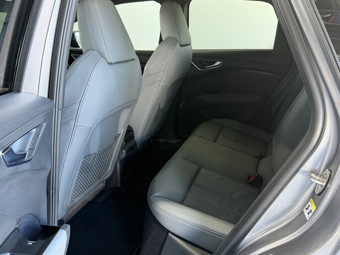 Audi Q4 E tron zeer compleet uitgevoerd . Deze auto heeft lederen bekleding en is voorzien van een