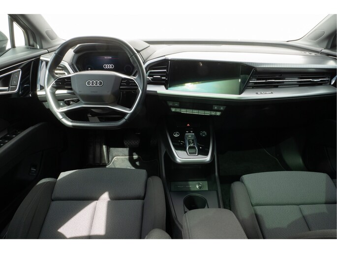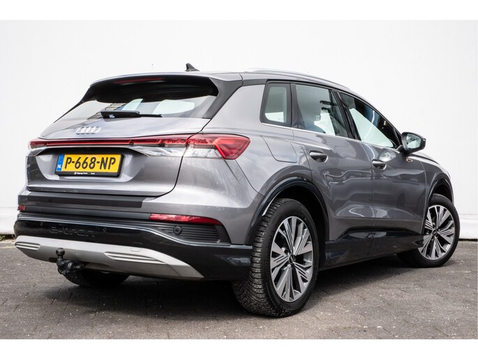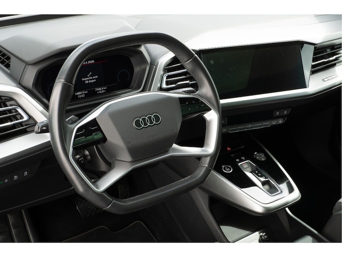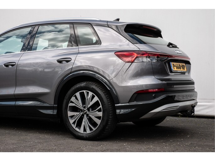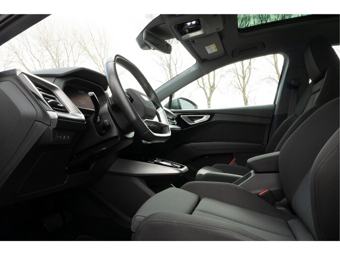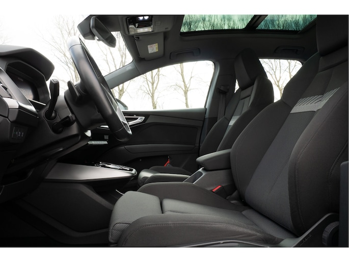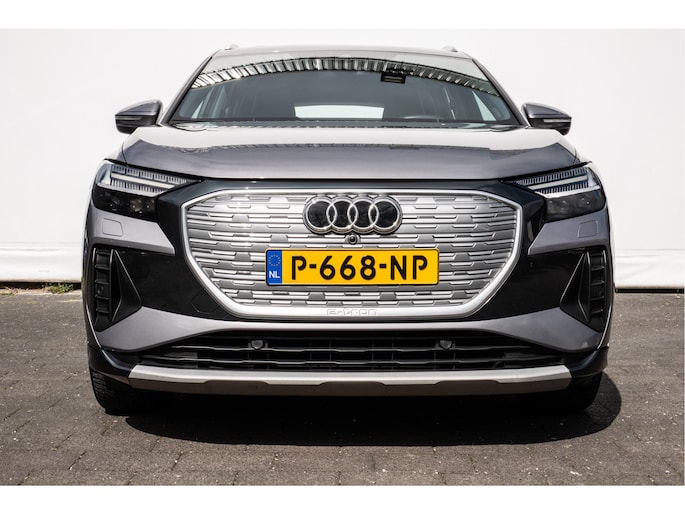 Topprestaties zonder emissies: de Audi Q4 e-tron is een elektrische auto zonder compromissen. De prestaties van de elektromotor kunnen de vergelijking met een brandstofmotor moeiteloos aan. Een krachtige motor geeft deze auto zijn sportieve prestaties. Geen gerommel bij het inladen; één druk op de knop en de elektrisch bedienbare achterklep gaat open. En precies zo gemakkelijk is het met het elektrisch bediende glazen panorama dak! In de verwarmbare voorstoelen zitten is elke keer een welkom gevoel. Laat die bochten maar komen! In de sportstoelen zitten u en uw bijrijder altijd goed! De koplampen zijn voorzien van de allernieuwste lichttechnologie: matrix LED-verlichting. Tot de uitrusting van deze Audi behoren ook 19 inch lichtmetalen velgen, neerklapbare achterbank en LED-achterlichten.