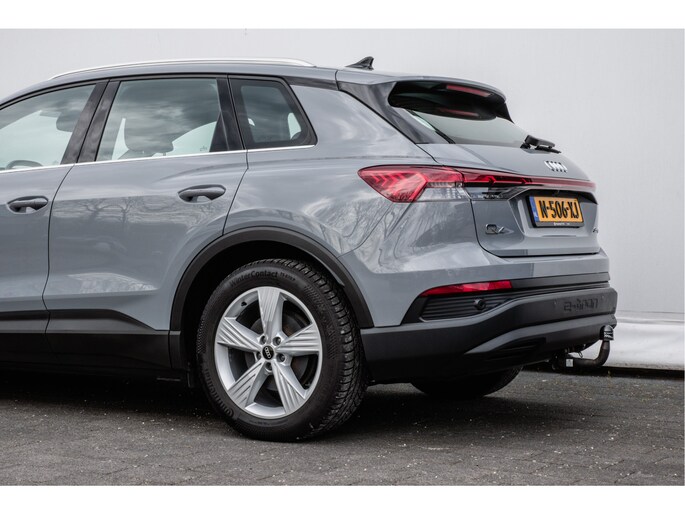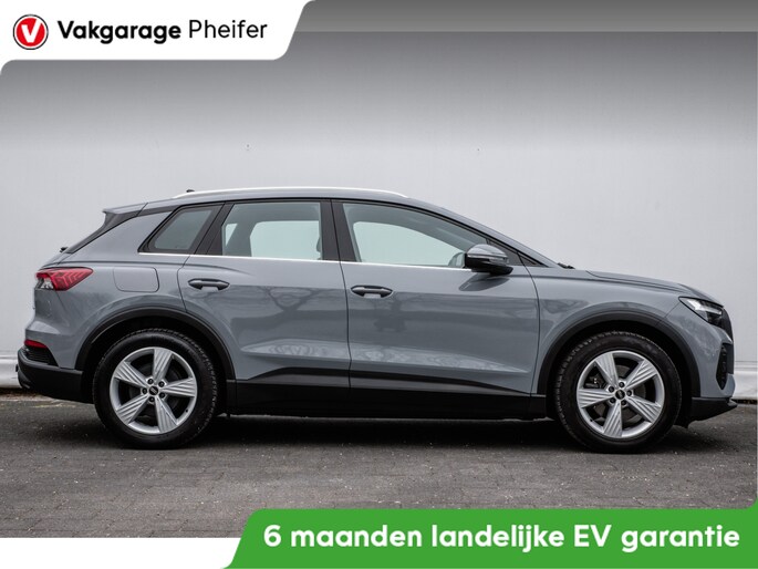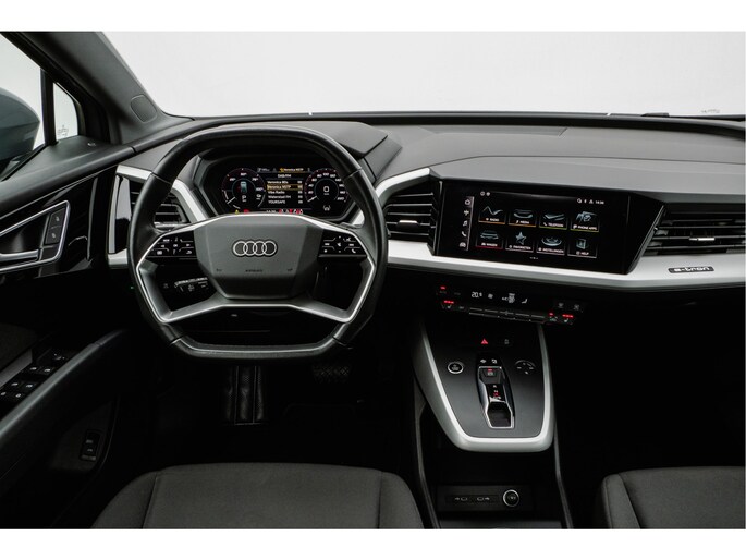 Efficiënte techniek en ongekende dynamiek. Het plezier van elektrisch rijden gaat in deze Audi Q4 e-tron samen met een spaarzaam stroomverbruik. U zult verrast zijn door de power van de elektromotor. En stil! De krachtige motor geeft deze Audi uitstekende prestaties. Een weldaad voor u en uw bijrijder: deze Audi Q4 e-tron heeft verwarmbare voorstoelen. De achterklep opent automatisch met een druk op de knop. Handig als u met volle handen staat. Bij de rijke uitrusting horen ook 19 inch lichtmetalen velgen, LED koplampen en neerklapbare achterbank.