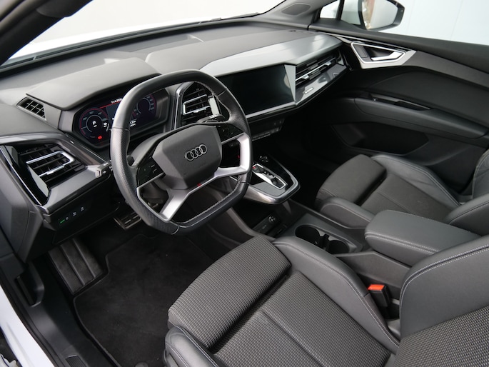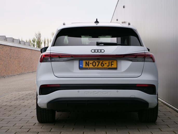 U wordt geïntroduceerd tot de digitale wereld van mobiliteit waarop alles wat u wenst wordt geprojecteerd op het digitale dashboard. Twijfelen hoeveel ruimte u achter de auto heeft? Met de achteruitrijcamera weet u altijd hoeveel centimeter! Adaptive cruise control houdt de ingestelde snelheid vast en houdt afstand tot het voertuig voor u. Deze Audi Q4 e-tron is 'connected'. Belangrijke functies worden permanent gemeten en zijn uit te lezen via een speciale app, ook op afstand. Het infotainmentaanbod is zeer uitgebreid. Ontspannen reizen doet u met behulp van het full map navigatiesysteem terwijl u muziek afspeelt via het audio-installatiesysteem met DAB-radio. Ook is de Audi uitgerust met: WIFI-hotspot en automatische airconditioning.