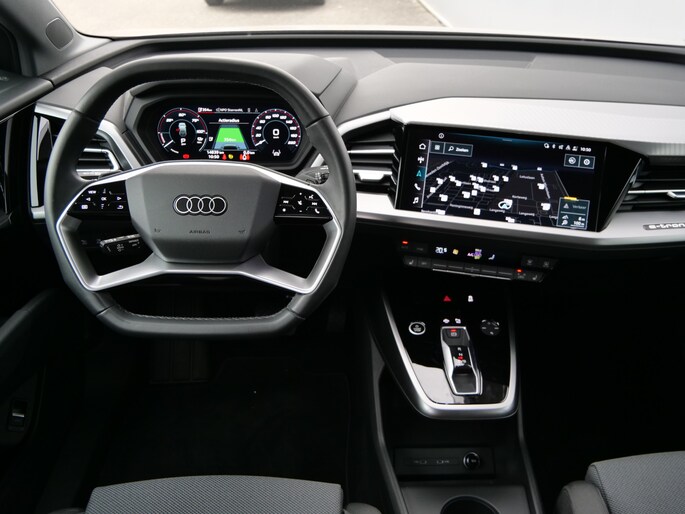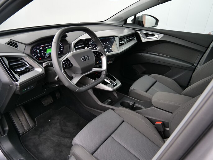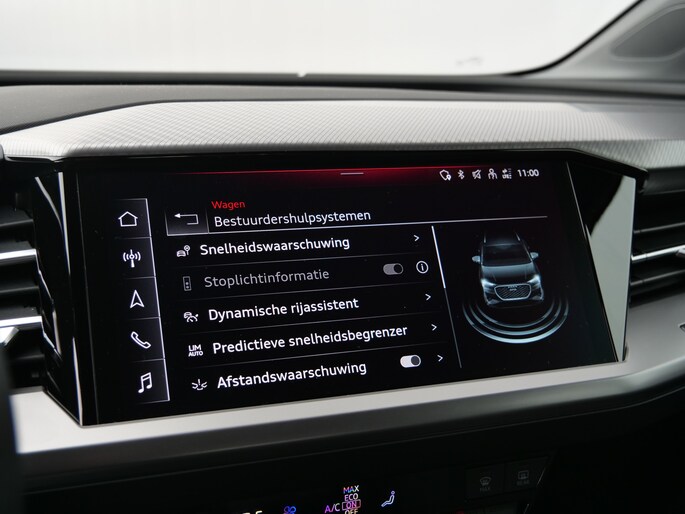 Zoals u mag verwachten van deze Audi Q4 e-tron is hij uitgerust met een reeks aan actieve veiligheidssystemen. Een belangrijke bijdrage aan de veiligheid onderweg levert de verkeersbord-detectie. Het Lane-keeping systeem zorgt voor een automatisch constante positie binnen de rijstrook. Afdwalen is uitgesloten.