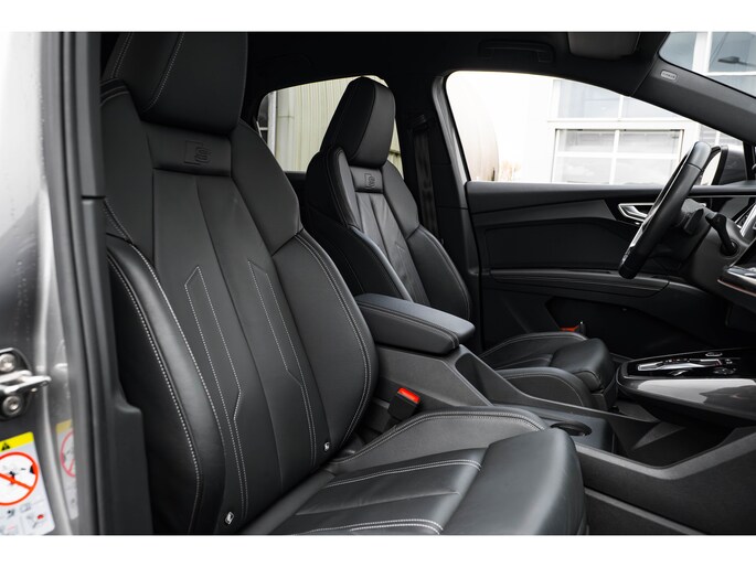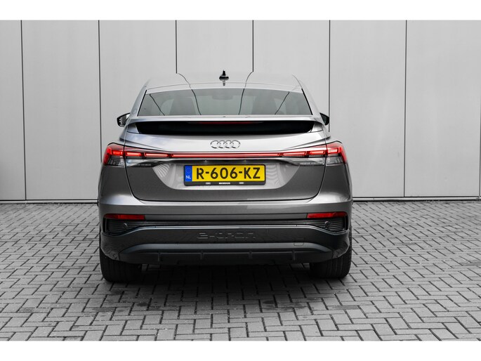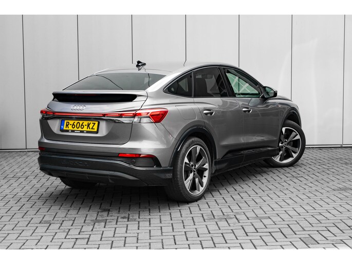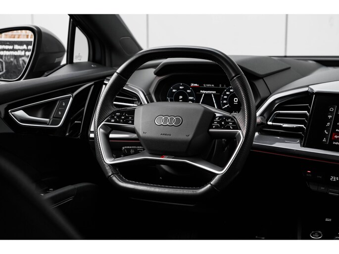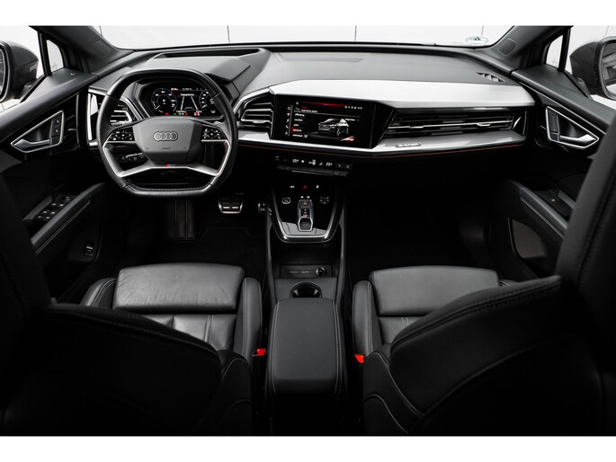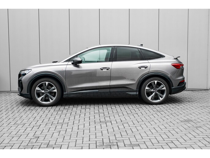De rijbeleving is intuïtief. Het rijplezier is intens. Maak kennis met deze Audi Q4 Sportback e-tron en laat u verrassen door zijn unieke karakter. U wordt actief onderdeel van de energietransitie met de elektromotor. Als ook de uitstraling een beetje pittig mag, komt de S-Line styling mooi van pas. Een krachtige motor geeft deze auto zijn sportieve prestaties. Het lederen interieur voegt stijl en allure toe. Ga samen met uw bijrijder lekker zitten in de verwarmbare voorstoelen. Chauffeur en bijrijder zitten stabiel in de scherpe bochten door de sportstoelen. De achterklep opent automatisch met een druk op de knop. Handig als u met volle handen staat. Een verwarmd stuurwiel overbodige luxe? Wacht maar tot het kouder wordt! De verlichting van de koplampen geeft het gevoel dat het altijd dag is. De slimme matrix LED-technologie past zich aan bij tegenliggers, zonder verlies van lichtkwaliteit. Bij de uitrusting van deze Audi horen onder meer 20 inch lichtmetalen velgen, sportonderstel, extra getint glas, neerklapbare achterbank, LED-achterlichten en verstelbare lendensteunen. Het digitale dashboard geeft alle up-to-date info en functies voor een slimme en veilige rit. Onder alle omstandigheden perfect zicht op wat zich achter de auto afspeelt: de achteruitrijcamera zorgt ervoor! Met adaptive cruise control houdt deze auto automatisch afstand tot uw voorligger. Kop aan kont langzaam rijden: dan is afstand houden soms lastig. De file assistent helpt en zorgt automatisch voor veilige ruimte tot de voorligger. Ook als die tot stilstand komt. Kilometerstand? Oliepeil? Accuspanning? Allemaal te zien via de app. Overal. Altijd. Dankzij Connected Services. U bent in deze Audi ook voorzien van full map navigatiesysteem, automatische airconditioning, DAB ontvangst en keyless entry. De automatische veiligheidssystemen in deze Audi fungeren als een extra paar ogen. En dat niet alleen, ze kunnen ook actief ingrijpen, om zo u en uw passagiers te beschermen. Altijd uw blik op de weg: met de head-up display hoeft u geen moment uw ogen te verplaatsen. De info wordt geprojecteerd in het zichtveld voor u. Belangrijk voor uw veiligheid en die van uw passagiers is de verkeersbord-detectie in deze auto. Het Lane-keeping systeem zorgt voor een automatisch constante positie binnen de rijstrook. Afdwalen is uitgesloten. Echt, diesel en benzine zijn binnenkort verleden tijd. Kies nu voor elektrisch! Bel ons om een proefrit te plannen.