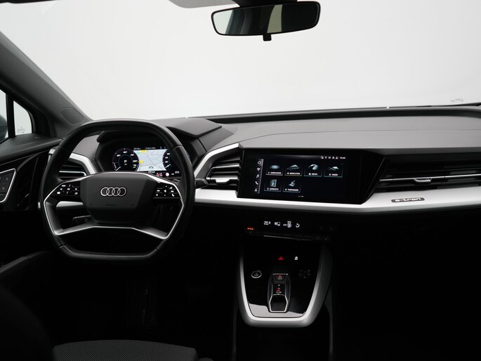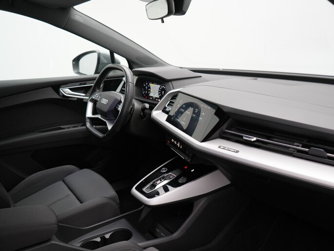 Autorijden zonder plaatselijke uitlaatemissies. Audi maakt deze belofte waar met deze Q4 e-tron. Eindelijk elektrisch rijden? Deze auto is voorzien van een elektromotor. Dus stil, schoon én snel! Een krachtige motor geeft deze auto zijn sportieve prestaties. Bestuurder en bijrijder krijgen een warm welkom: deze Audi Q4 e-tron is voorzien van verwarmbare voorstoelen. Met een druk op de knop gaat de elektrische achterklep open. In deze auto profiteert u onder andere ook van: 19 inch lichtmetalen velgen, LED koplampen, zwarte hemelbekleding en neerklapbare achterbank.
