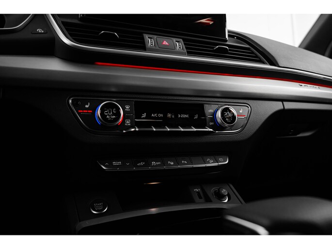 Deze Audi Q5 staat garant voor vele veilige en comfortabele kilometers. Met de S-Line styling mag deze auto zeker gezien worden. De hybride motor van deze Audi Q5 is de ideale combi van zowel brandstof- als elektromotor. Minder vaak naar de pomp, maar ook zuinig en schoon door de stad! Stoelverwarming hoort ook bij de uitrusting van deze auto. De bagageruimte is toegankelijk via een comfortverhogende elektrische achterklep. De matrix LED-verlichting in de koplampen bestaat uit een raster van lichtpunten met maximale opbrengst. Bij tegenliggers past het systeem precies die punten aan die hinderlijk kunnen zijn. U behoudt maximaal zicht! Bij de zeer complete uitrusting van deze auto behoren ook halflederen bekleding, warmtewerend glas, in delen neerklapbare achterbank, LED-achterlichten, verstelbare lendensteunen en verwarmde ruitensproeiers. Het digitale dashboard rekent mee, denkt mee en rijdt mee. Alle info overzichtelijk in beeld, overal. De 360 graden camera op deze auto biedt u een volledig, panoramisch zicht op de omgeving. Met adaptive cruise control houdt deze auto automatisch afstand tot uw voorligger. Loopt het verkeer onderweg vast, schakel dan de file assistent in en laat het systeem zorgen voor de juiste afstand bij stilstaan en rijden. Uw smartphone is tegenwoordig de sleutel tot heel veel. Ook voor deze auto. Remote services, noemen we dat. Waar u ook bent, contact houden is een eitje. Deze auto is voorzien van full map navigatiesysteem, automatische airconditioning, sportstuur met schakelpaddels, draadloos opladen, DAB ontvangst en regensensor. De intelligente veiligheidssystemen in deze auto waken continu over uw veiligheid. Dankzij de head-up display krijg je de gewenste dashboardinfo op de voorruit geprojecteerd. Bij de veiligheidssystemen van deze Audi hoort ook de verkeersbord-detectie. Die leest tijdens het rijden als het ware met u mee en attendeert u op de significante verkeersborden langs en boven de weg. Het Lane-keeping systeem zorgt dat u mooi binnen de lijntjes blijft. Ongemerkt buiten de rijstrook komen is er niet meer bij. Bovenop deze veiligheidsfeatures heeft deze Audi bovendien dodehoekdetectie, forward collision warning system, hill hold functie, brake assist en bandenspanningcontrolesysteem. Als u meer wilt weten over deze auto, dan vertellen we u dat graag. Belt of mailt u ons vandaag nog?