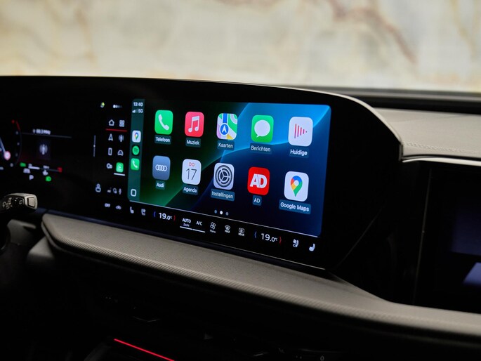 Met het MMI navigatie plus (7UG) in combinatie met MMI experience pro (PYH) geniet u van een uiterst gebruiksvriendelijk navigatie- en infotainmentsysteem met spraakbediening, 3D-kaarten en een groot aanraakscherm. Via Audi connect (IT3, IU6, IW3, JE3) beschikt u over online functies zoals eCall & bCall, real-time verkeersinformatie en een WiFi-hotspot. De Audi phone box (9ZE) biedt draadloos opladen en een optimale verbinding via de buitenantenne.