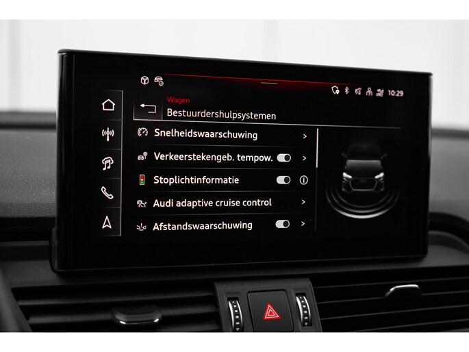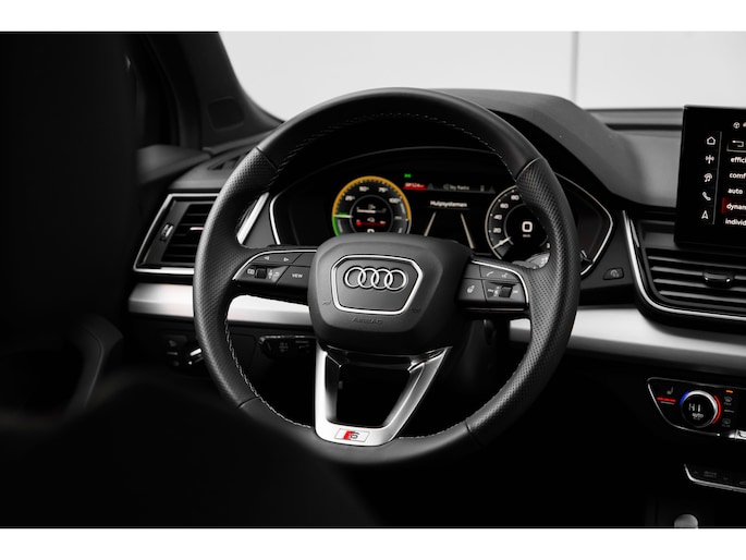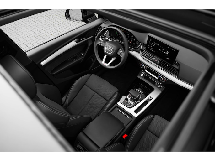 Een auto als de Audi Q5 biedt een dynamiek en comfort die typerend zijn voor de producten van de Duitse autofabrikanten. Sportief, stoer en net even anders dan anders, mede dankzij de S-Line styling. Het is vermeldenswaard dat deze auto maar 3013 kilometer heeft gereden sinds 2025. Minder vaak tanken? Dat gaat lukken, dankzij de hybride motor die zowel op brandstof als elektriciteit werkt. Een mooie combi, die merkbaar is in de portemonnee. Deze Audi Q5 legt bestuurder én bijrijder compleet in de watten met de verwarmbare voorstoelen. De sportstoelen geven het interieur een super strakke look. Houdt u van frisse lucht en van licht dan zit u helemaal goed met het elektrisch bediende panoramadak. De bagageruimte is toegankelijk via een comfortverhogende elektrische achterklep. Deze Audi Q5 heeft een verwarmd stuurwiel. Nooit meer koude handen onderweg. Opvallend is de geavanceerde matrix LED-verlichting met daglichtkwaliteit. De koplampen dimmen automatisch het deel van de lichtstraal waar voor- of tegenliggers in rijden. De overige segmenten blijven aan en verlichten de weg maximaal. Natuurlijk behoren 20 inch lichtmetalen velgen, halflederen bekleding, warmtewerend glas, in delen neerklapbare achterbank, LED-achterlichten en verwarmde ruitensproeiers ook tot de uitrusting van deze complete auto. Rij- en route-info wordt perfect in beeld gebracht door het digitale dashboard. De 360 graden camera op deze auto is een innovatieve functie die de obstakels rondom de auto in beeld brengt voor een optimaal zicht. Adaptive cruise control houdt de ingestelde snelheid vast en houdt afstand tot het voertuig voor u. De ingebouwde file assistent is een echte helper als het vaststaat onderweg. Het systeem meet ruimte tot de auto vóór u permanent en activeert zelfs de remmen als uw voorligger stopt. De conditie van deze auto is 24/7 inzichtelijk dankzij Connected Services. Ook premium audiosysteem, full map navigatiesysteem, automatische airconditioning, draadloos opladen, DAB ontvangst en regensensor horen tot de voorzieningen op deze auto. Deze Audi is voorzien van verschillende intelligente veiligheidsvoorzieningen. Ze kijken tijdens het rijden als het ware met u mee, ze signaleren potentieel gevaarlijke situaties en in een aantal gevallen kunnen ze ook ingrijpen. Dat de auto steeds meer taken van de bestuurder overneemt, merkt u bijvoorbeeld aan het systeem voor verkeersbord-detectie in deze auto. Keep your lane? Het Lane-keeping systeem zorgt er automatisch voor. Het forward collision warning-systeem waarschuwt indien een botsing dreigt met een voorliggend of tegemoetkomend voertuig. Bovenop deze veiligheidsfeatures heeft deze Audi bovendien dodehoekdetectie, hill hold functie, brake assist en bandenspanningcontrolesysteem. Nieuwsgierig? Bel of mail ons nu voor een proefrit.
