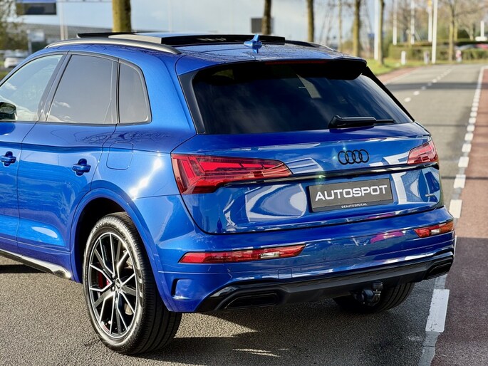 Unieke Audi Q5 50 Tfsi e Quattro S-Line 299Pk 09-2022 met 67Dkm Individual Lackierung Audi Exclusive Blauw Alle Opties: Panoramadak Matrix Koplampen (zandlopers) S-Line Elektrisch Verstekbare Leder/Alcantara Sportstoelen Massage Stoelen S-Line Exterieur/Interieur Pakket ACC Adaptieve Cruise Control Lane Assistent Dodehoek Assistentie Zwarte Hemel Stoelverwarming Voor + Achter Bluetooth Telefoon DAB Radio Achteruitrij Camera Audi Connect Privacy Glass Getint Glas Standkachel Interieurverwarming Parkeersensoren V+A Climate Control 4 Zone Navigatie Systeem Virtual Cockpit Led Achterlichten (zandlopers) Sfeerverlichting In Kleur Instelbaar Stuurverwarming Elektrische Achterklep Keyless Entry/Start Draadloos Opladen Elektrisch Wegklapbare Trekhaak 21 Inch Audi Sport Velgen Origineel