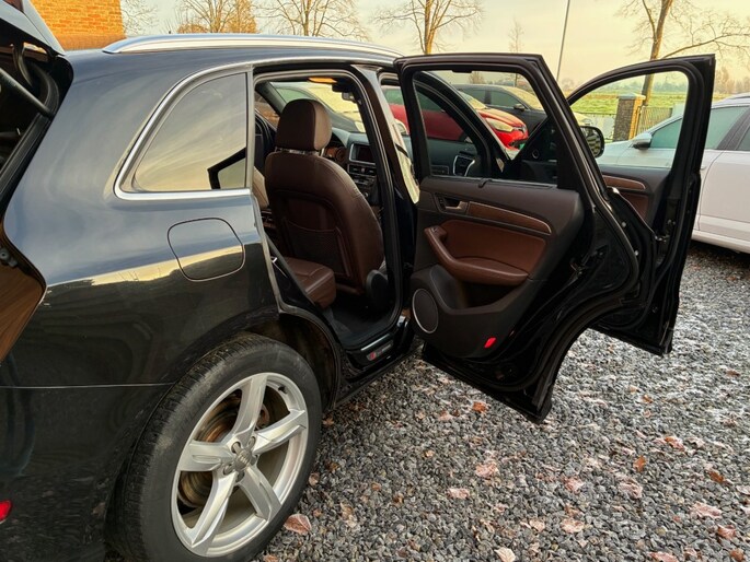 Het interieur van de Q5 is mogelijk nog luxer en stijlvoller te noemen dan het exterieur. De bruine lederen bekleding, elektrisch verstelbare stoelen en het panoramadak zorgen voor deze luxueuze rijervaring. Bovendien is de auto uitgerust met geavanceerde technologie, zoals het MMI-infotainmentsysteem, dat eenvoudige toegang biedt tot navigatie, audio en andere handige functies. Wat betreft veiligheid en rijhulpsystemen, is de Q5 voorzien van een uitgebreid pakket aan features, waaronder cruise control, parkeersensoren, achteruitrijcamera en nog veel meer. Hierdoor kunt u met gemoedsrust en vertrouwen de weg op.