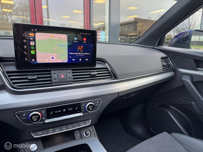 Je ziet het niet, maar de nieuwigheid is er nét van af. En dat maakt deze jonge Audi Q5 heel betaalbaar. Een hoogtepunt uit de specificatielijst van deze auto is de sportieve S-Line styling. Deze Audi Q5 is vanwege de hybride motor een echte slimmerd. Want u rijdt zowel op brandstof als elektrisch. En dat scheelt in de kosten! Daglicht valt vrij binnen door het elektrisch bediende glazen panorama dak. Wat ook met één klik opent, is de elektrisch bedienbare achterklep. Een weldaad voor uw rug en die van uw bijrijder: deze Audi Q5 heeft verwarmbare voorstoelen met massagefunctie. De sportstoelen geven het interieur een super strakke look. De koplampen zijn voorzien van de allernieuwste lichttechnologie: matrix LED-verlichting. Tot de uitrusting van deze Audi behoren ook 19 inch lichtmetalen velgen, warmtewerend glas, in delen neerklapbare achterbank en LED-achterlichten.