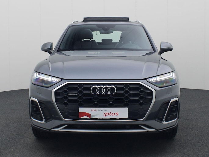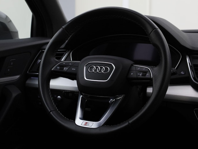 Deze auto wil maar een ding: rijden. Dat ziet u aan zijn sportieve uiterlijk. Deze Audi Q5 straalt kwaliteit en klasse uit en belooft u puur rijplezier. Met de kenmerkende S-Line styling toont deze Audi zich van zijn sportieve kant. De hybride motor combineert het gebruik van brandstof en elektriciteit, en dat maakt van deze Audi Q5 een zuinige, slimme auto. 's Winters op pad gaan kan een behoorlijke uitdaging zijn. Daarom is deze Audi Q5 voorzien van weldadige verwarmbare voorstoelen. Natuurlijk zijn de sportstoelen super functioneel als het rechterpedaal ingetrapt wordt. Maar ook voor het uiterlijk doen ze veel! Laat de zon maar schijnen door het elektrisch bediende glazen panoramadak. Een praktische extra is de elektrisch bedienbare achterklep die opent en sluit met een druk op de knop. Voorzien van matrix LED-verlichting. De auto dimt precies dat deel van de lichtstraal waar de voor- of tegenliggers in rijden. De overige segmenten blijven aan en verlichten de weg. Tot de voorzieningen van deze auto behoren 19 inch lichtmetalen velgen, warmtewerend glas, instelbaar onderstel, in delen neerklapbare achterbank, LED-achterlichten en verwarmde ruitensproeiers.