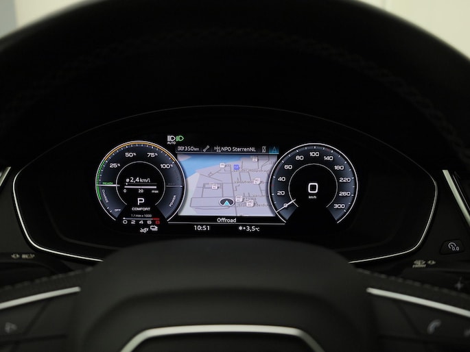 Het personaliseren van uw cockpitinterface is mogelijk met het digitale dashboard in deze auto. Hoeveel ruimte heeft u nog bij het inparkeren? De achteruitrijcamera brengt helder in beeld wat zich achter de auto bevindt en geeft een geluidssignaal. Als u de adaptive cruise control inschakelt, regelt de auto zelf de snelheid en de afstand tot de auto voor u. Loopt het verkeer onderweg vast, schakel dan de file assistent in en laat het systeem zorgen voor de juiste afstand bij stilstaan en rijden. Als u regelmatig met een caravan of aanhanger rijdt, is de elektrisch inklapbare trekhaak een uitkomst. U bent in deze Audi ook voorzien van full map navigatiesysteem, WIFI-hotspot, automatische airconditioning, sportstuur met schakelpaddels, DAB ontvangst en regensensor.