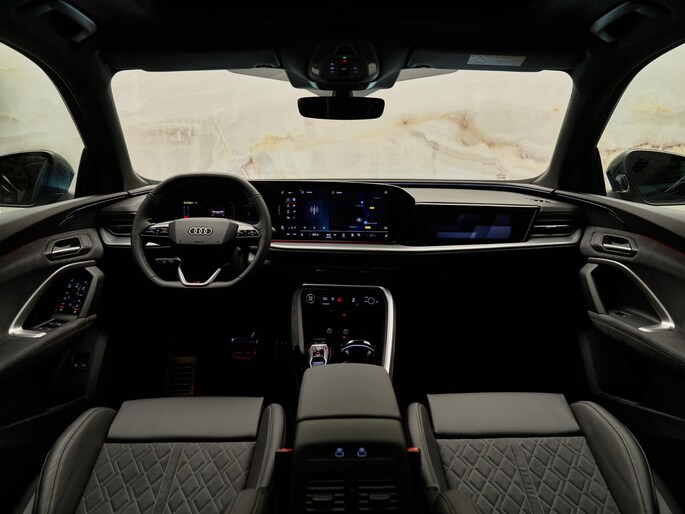 Het interieur straalt sportieve luxe uit met Dinamica-microvezel en lederen bekleding (PWN), elektrisch verstelbare stoelen met geheugen (AI1) en uitgebreide interieurvoorverwarming (GA2). De 3-zone airconditioning (9AQ) en het glazen panoramadak (3FU) zorgen voor een aangename sfeer, terwijl warmtewerend glas (QL5) en de Comfortsleutel (4K5) het gebruiksgemak compleet maken.