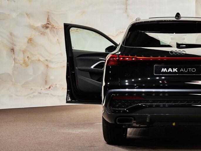 De MMI navigatie plus met MMI touch (7UG) biedt scherpe kaarten, intuïtieve bediening en online functies via Audi connect (IT3/IW3). De Audi virtual cockpit plus (9S9) toont alle rijinformatie overzichtelijk, terwijl de smartphone-interface en telefoonbox met inductielader (IU6/9ZE) zorgen voor draadloos opladen en perfecte connectiviteit. Met digitale radio (QV3) en USB-poorten voor- en achterin (UE8) is iedere rit verbonden en comfortabel.