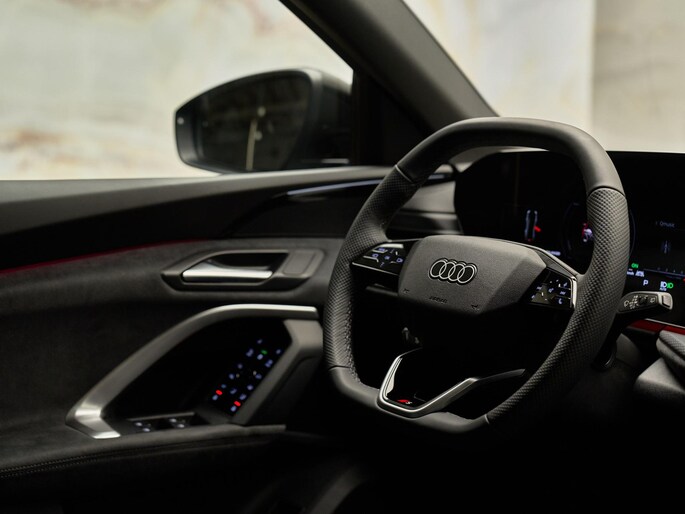 De zwarte exterieuraccenten (PAH), rode remzadels (PC2) en zwarte hemelbekleding (6NQ) benadrukken het sportieve karakter. Binnenin zorgen verlichte instaplijsten met S-logo’s (VT5), interieurapplicaties in vanadiumkleur (QJ3) en het Lichtpakket Pro (QQ4) voor een exclusieve ambiance.