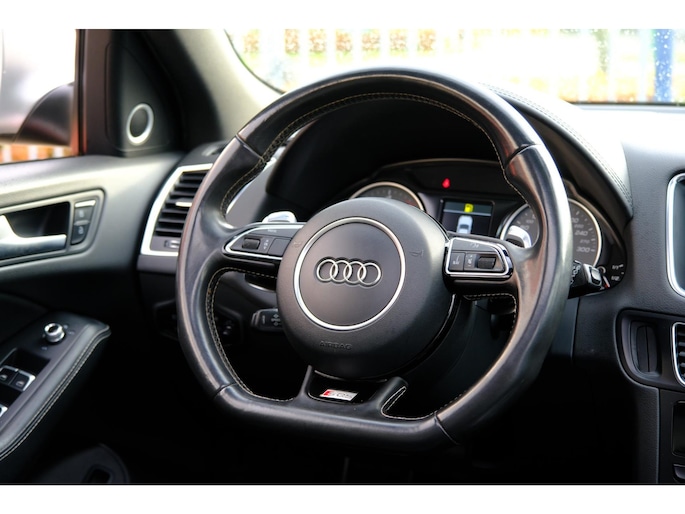 Gebouwd voor vele jaren rijplezier waarbij comfort en veiligheid op de eerste plaats staan, dat is deze typisch Duitse Audi Q5. Bent u bestand tegen een beetje bekijks? Dan zal de S-Line styling u zeker aanspreken. De aandrijving van deze Audi wordt verzorgd door een zescilinder motor en een automatische transmissie. Dak dicht? Dan toch volop daglicht door het elektrisch bediende glazen panorama dak. Het lederen interieur ademt luxe en de elektrisch bedienbare achterklep biedt volop gemak. Neem plaats op de comfortabele stoelen. Dankzij de elektrische bediening en het geheugen is het eenvoudig om hierin de beste zitpositie te vinden. Xenonverlichting zorgt voor een krachtige en heldere lichtbundel. Tot de uitrusting behoren ook 21 inch lichtmetalen velgen, sportonderstel, warmtewerend glas, in delen neerklapbare achterbank, verstelbare lendensteunen en verwarmde ruitensproeiers.