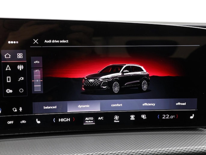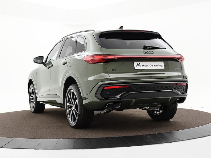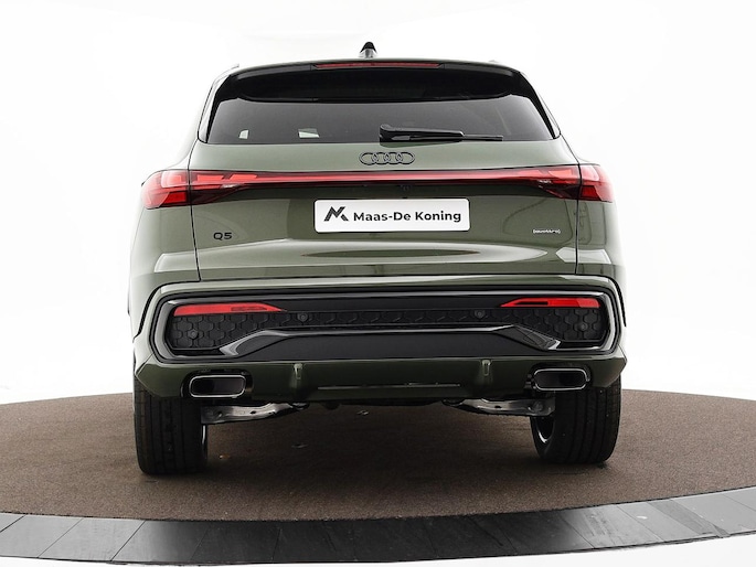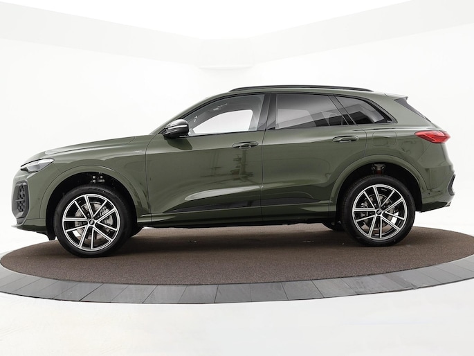 Ontspannen en zorgeloos autorijden, dat doet u met deze Audi Q5. S-Line styling vertegenwoordigt de overtreffende trap in smaakvolle sportiviteit. Het is een nieuwe auto, hij is nu uit voorraad leverbaar. Brandstofmotor, elektromotor? Deze hybride Audi Q5 combineert ze. En dat is te merken bij de pomp, want die ziet u voortaan minder vaak. U zult maar een handje tekort komen bij het inladen... dan is de elektrisch bedienbare achterklep een uitkomst. En wat een heerlijk vrij gevoel geeft dat elektrisch bediende glazen panorama dak! Deze auto biedt stoelverwarming, een verwarmbare achterbank en een verwarmbaar stuur, waardoor het zelfs op de koudste dagen aangenaam rijden is. Zijwaartse g-krachten worden solide opgevangen door de sportstoelen. Passend bij een auto in het hogere segment is de luchtvering, en dat is te merken aan de gelijkmatige wegligging. De geavanceerde matrix LED-verlichting in de koplampen levert maximaal helder zicht en past zich subtiel aan zodra er een tegenligger komt. Zonder lichtkwaliteitsverlies! De uitmonstering van deze auto wordt gecompleteerd door onder meer 20 inch lichtmetalen velgen, sportonderstel, warmtewerend glas, in delen neerklapbare achterbank en LED-achterlichten.