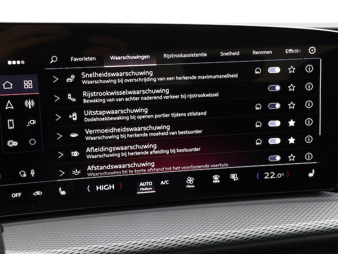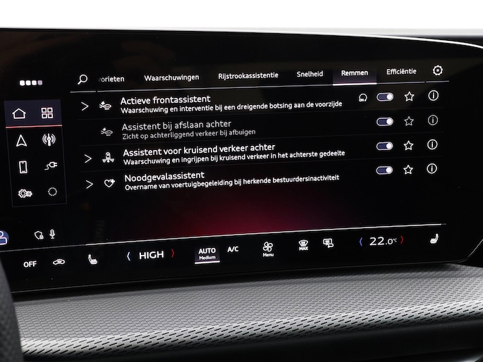Aan boord van deze Audi houden verschillende geavanceerde systemen voor u de weg in de gaten. Ze waarschuwen u voor noodsituaties en kunnen in een aantal gevallen ook zelf ingrijpen. Onderweg zorgt verkeersborddetectie ervoor dat u geen waarschuwingsbord mist. Een camera houdt de juiste koers binnen de rijstrook in de gaten en het Lane-keeping systeem corrigeert bij afwijkingen. Hoe goed u ook oplet in het verkeer, de dode hoek blijft een risico. Gelukkig is deze Audi Q5 voorzien van actieve dodehoekdetectie. Met voorzieningen als vermoeidheidsherkenning, frontale botsbescherming en bandenspanningcontrolesysteem, bent u altijd veilig onderweg.