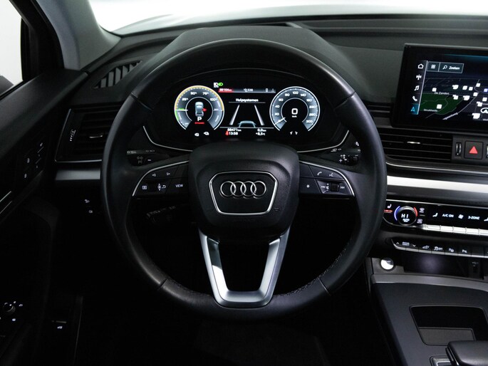 Rijden als nieuw? Dan is deze Audi Q5 een fantastische buitenkans. Prille cijfers op de teller, piepjong ogend, verbluffend actueel in extra's en opties... Deze Audi Q5 heeft het allemaal! De S-Line styling voegt een aantal uitgesproken sportieve accenten toe. De hybride motor combineert een elektromotor met een verbrandingsmotor. Je kan dus kiezen. In de verwarmbare voorstoelen zitten is elke keer een welkom gevoel. De achterklep opent automatisch met een druk op de knop. Handig als je met volle handen staat. Dankzij de matrix LED-verlichting geven de koplampen ook in het donker daglicht. In deze auto profiteer jij onder andere ook van: 20 inch lichtmetalen velgen, warmtewerend glas, in delen neerklapbare achterbank, LED-achterlichten en verwarmde ruitensproeiers.