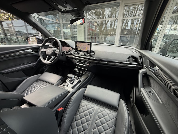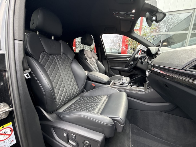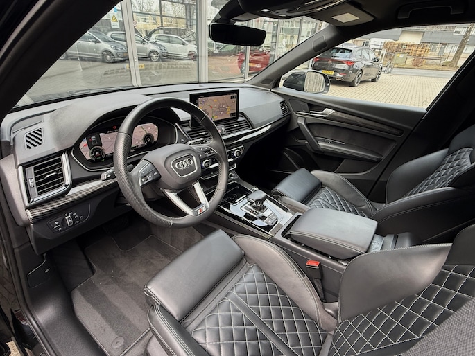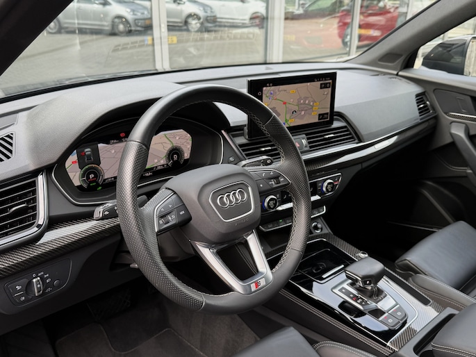 Schitterende, dealer onderhouden Audi Q5 sportback 55 tfsi-e qauttro 367pk!! Zeer compleet uitgevoerd met o.a. full map navigatie, carplay, 21 inch velgen, luchtvering, rs stoelen, vollederen bekleding, stoelverwarming, carbon interieur afwerking, keyless go, adaptieve cruise control, 360 graden camera, bang en olufsen high end speakersysteem, interieur verlichtingspakket in kleuren instelbaar, Oled matrix verlichting, privacy glas, black optiek pakket, elektrisch verstelbare stoelen, enz.. enz..