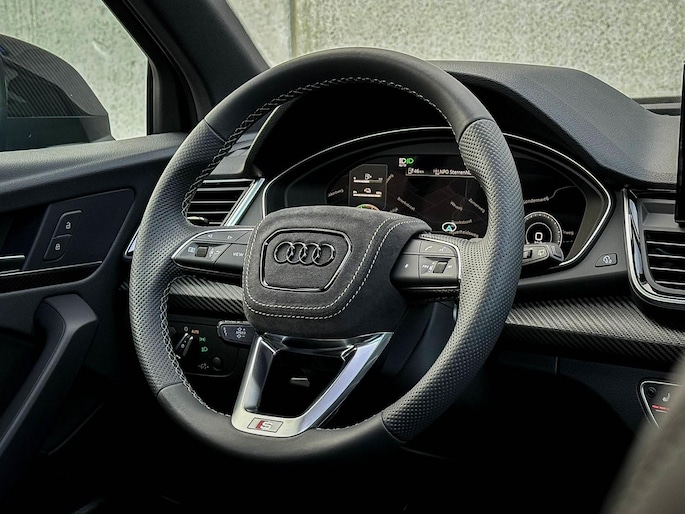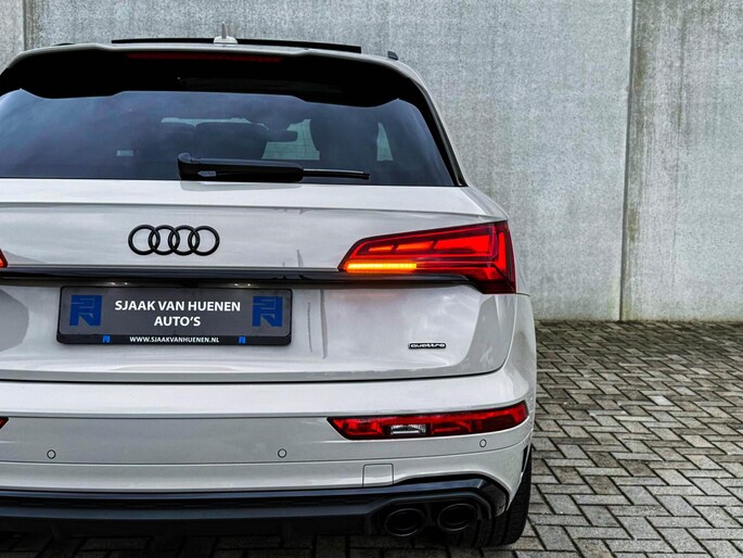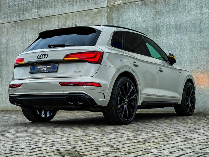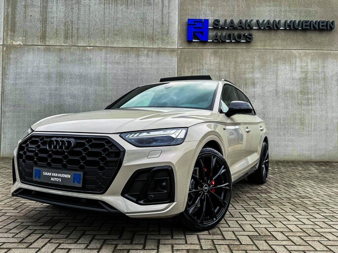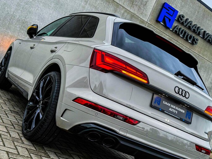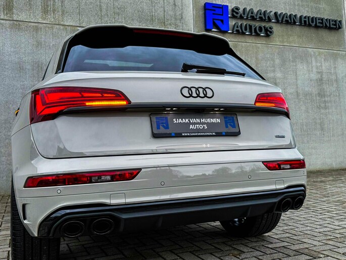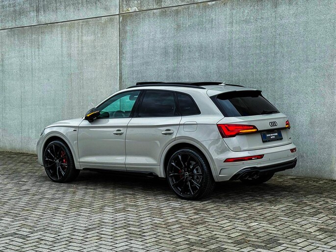NIEUW MODEL | MODEL 2023| *LET OP: 1e kentekenregistratie 01-11-2022. Dit bijzondere Audi Exclusive exemplaar Audi Q5 55 TFSI e 270kw/367pk Quattro Competition S-Tronic Automaat Pro Line S S-Line verkeert in een smetteloze staat! Het betreft een origineel Audi dealer exemplaar welke afkomstig is van de 1é eigenaar met een zeer interessant gecontroleerde tellerstand van slechts 41.741 km. Met een unieke ofwel perfecte fabrieksconfiguratie; Neem de fantastische Audi Exclusive Siam Beige Metallic lak gecombineerd met het Zwart optiekpakket, de actieve comfortabele instelbare Dynamische Luchtvering, de elektrisch verstelbare zwart Valcona lederen S kuipstoelen incl. Diamond Cross stitching, Audi Exclusive Alcantara airbag + Geperforeerd lederen 3-spaaks S-line Sportstuurwiel beide voorzien van Grijze stiksels icm de Carbon look interieur afwerking, Black Pack / Zwart optiekpakket, HD Matrix Dynamische LED koplampen, Camera/ Rear View, Voorklimatisering fabrieksaf incl. Standkachel & Voorruitverwarming, Audi Exclusive OEM Carbon exterieurdetails en uiteraard het niet te missen Panoramisch glazen schuif-/kanteldak samen met de Audi Virtual Cockpit, Uniek! Deze Audi biedt met de 367pk en 500Nm sterke 2.0 liter TFSI turbomotor, gekoppeld aan de Audi Quattro 4-wielaandrijving een trekvermogen van 2000kg. Het betreft een BTW-auto, dus voor zowel de zakelijke als particuliere klant interessant. De getoonde 22inch Black Performance velgenset met 4x Pirelli Scorpion ZERO Allseason banden is tegen geringe meerprijs van €2595,- te verkrijgen.