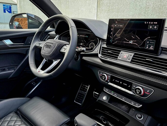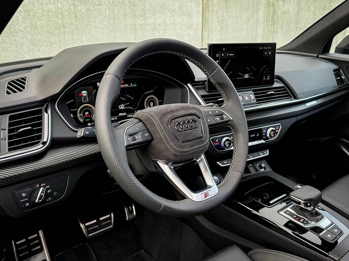 NIEUW MODEL 2023! Audi Exclusive|S-Line interieur|S-Line exterieur|55 TFSIe Plug in Hybride 367pk / 500Nm|Quattro 4-wielaandrijving|S-Tronic Automaat|Audi Exclusive Siam Beige Metallic|Panoramisch glazen schuif-/kanteldak|Audi Virtual Cockpit Plus|Airsuspension / Luchtvering - Dynamisch instelbaar onderstel|Zwart Valcona Lederen S kuipstoelen incl. Diamond Cross stitching Grijze stiksels|Elektrisch verstelbare voorstoelen|Elektrisch verstelbare lendensteun|Stoelverwarming|Geperforeerd lederen 3-spaaks S-line Sportstuurwiel incl. Grijze stiksels|Audi Exclusive Alcantara airbag met Grijs stiksel|Rear View / Achteruitrijcamera|Parkeersensoren voor- & achterzijde|Audi Drive Select - Instelbare rijprofielinstellingen|LED dagrijverlichting|HD Matrix OLED koplampen met dynamische lichtanimatie|LED achterlichten|3D Dynamische knipperlichten voor- & achterzijde|Audi Drive Select - Instelbare rijprofielinstellingen|ACC / Adaptieve Cruise Control|Lane Assist|Filehulp|Audi Pre Sense|Attention Assist|Grootlichtassist|Voice Control|Elektrisch bedienbare achterklep|Afstandswaarschuwing|Carbon Exterieurdetails Audi Exclusive|Navigatiesysteem MMI Plus|Uitgebreide boordcomputer|Bluetooth|Audi Premium Sound incl. Subwoofer|DAB+ / Digital Audio Broadcasting|Audi Connect Key|APP Connect|Apple CarPlay / Android Auto|Keyless Entry & Keyless GO|19inch LM Audi S-line velgen|*Optioneel: Getoonde 22inch Black Performance velgen|Coming-/Leaving Home|Licht- & Regensensor|Ambiance sfeerverlichting|Climate Control 3-zones|F1 schakelflippers|Spiegelpakket - Elektrisch verwb.-/verstelb. + inklapbare buitenspiegels|Carbon Buitenspiegels Audi Exclusive|Zwarte hemelbekleding|Automatisch dimmende binnenspiegel & buitenspiegels|Elektrische ramen voor- & achterzijde|Akoestisch geisoleerde zijruiten|Warmtewerende voorruit|Zonneschermen zijruiten|RVS Sportpedalen|RVS instaplijsten incl. LED verlichting|Zwarte Audi emblemen rondom|Black Pack Plus / Zwart optiekpakket|Hoogglans zwarte grille|Hoogglans zwarte raamomlijsting|Hoogglans zwarte Audi emblemen|Carbon Buitenspiegels|Audi OEM Design Black SQ5 diffuser + Hoogglans zwarte uitlaat eindstukken|Rode Audi Sport S remklauwen|Privacy Glass|Voorruitverwarming incl. voorklimatisering|Standkachel / Interieurvoorverwarming fabrieksaf|