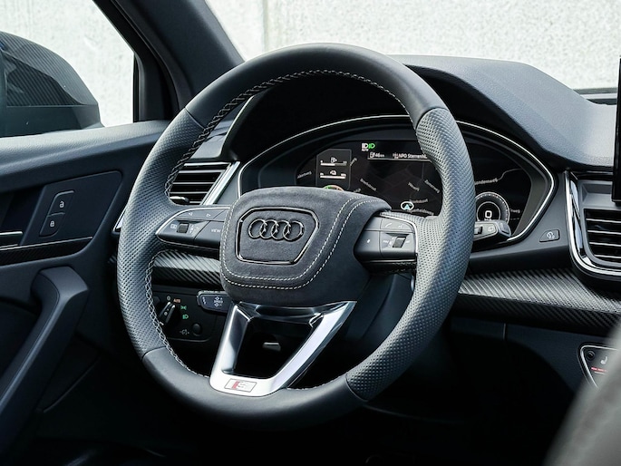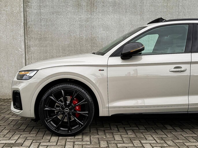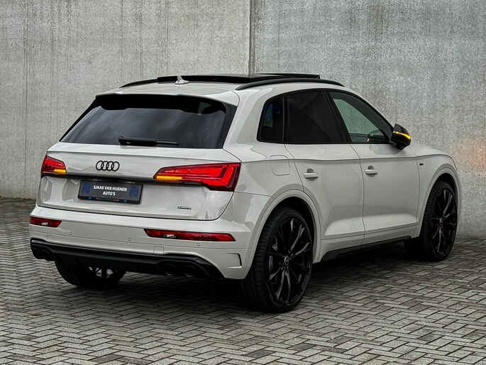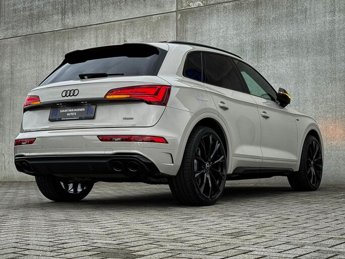 NIEUW MODEL | MODEL 2023|*LET OP: 1e kentekenregistratie 01-11-2022. Dit bijzondere Audi Exclusive exemplaar Audi Q5 55 TFSI e 270kw/367pk Quattro Competition S-Tronic Automaat Pro Line S S-Line verkeert in een smetteloze staat! Het betreft een origineel Audi dealer exemplaar welke afkomstig is van de 1é eigenaar met een zeer interessant gecontroleerde tellerstand van slechts 41.741 km. Met een unieke ofwel perfecte fabrieksconfiguratie; Neem de fantastische Audi Exclusive Siam Beige Metallic lak gecombineerd met het Zwart optiekpakket, de actieve comfortabele instelbare Dynamische Luchtvering, de elektrisch verstelbare zwart Valcona lederen S kuipstoelen incl. Diamond Cross stitching, Audi Exclusive Alcantara airbag + Geperforeerd lederen 3-spaaks S-line Sportstuurwiel beide voorzien van Grijze stiksels icm de Carbon look interieur afwerking, Black Pack / Zwart optiekpakket, HD Matrix Dynamische LED koplampen, Camera/ Rear View, Voorklimatisering fabrieksaf incl. Standkachel & Voorruitverwarming, Audi Exclusive OEM Carbon exterieurdetails en uiteraard het niet te missen Panoramisch glazen schuif-/kanteldak samen met de Audi Virtual Cockpit, Uniek! Deze Audi biedt met de 367pk en 500Nm sterke 2.0 liter TFSI turbomotor, gekoppeld aan de Audi Quattro 4-wielaandrijving een trekvermogen van 2000kg. Het betreft een BTW-auto, dus voor zowel de zakelijke als particuliere klant interessant. De getoonde 22inch Black Performance velgenset met 4x Pirelli Scorpion ZERO Allseason banden is tegen geringe meerprijs van €2595,- te verkrijgen.