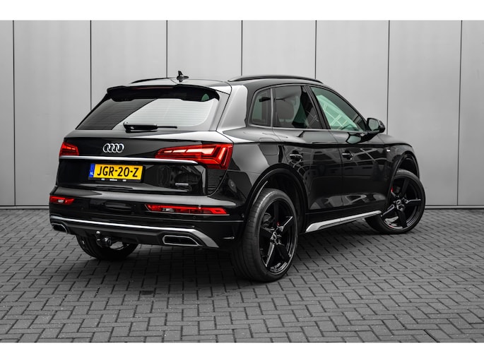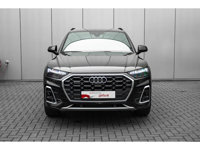 Een keurige auto, dat is deze Audi Q5, die 28031 kilometer heeft gelopen. Drie letters veranderen deze Audi in een uitzonderlijke Audi. De S-Line styling staat voor individualiteit en sportiviteit. De hybride motor combineert een elektromotor met een verbrandingsmotor. U kunt dus kiezen. Op koude en donkere dagen zijn de verwarmbare voorstoelen een uitkomst. Voor het pittige uiterlijk én goed gesteund zitten zorgen de sportstoelen. Met een druk op de knop gaat de elektrische achterklep open. Perfect zicht bij nacht en slecht weer? Dat leveren de koplampen met matrix LED-verlichting. Natuurlijk behoren halflederen bekleding, warmtewerend glas, in delen neerklapbare achterbank, LED-achterlichten, verstelbare lendensteunen en verwarmde ruitensproeiers ook tot de uitrusting van deze complete auto. Het digitale dashboard stelt u in staat uw cockpitinterface te personaliseren. Met de 360 graden camera op deze auto wordt het rijden een heel stuk veiliger, dankzij het optimale zicht dat het biedt. Adaptive cruise control houdt de ingestelde snelheid vast en houdt afstand tot het voertuig voor u. De aanwezige file assistent meet de afstand tot uw voorligger en zorgt voor een veilige afstand. Staat het voor u opeens stil? Dan zorgt het systeem dat de auto ook stopt. De speciale app verbindt met Connected Services, die de status van vitale functies bijhoudt en waarschuwt als u bijvoorbeeld moet tanken, de bandenspanning moet controleren of olie moet bijvullen. Ook full map navigatiesysteem, automatische airconditioning, sportstuur met schakelpaddels, draadloos opladen, DAB ontvangst en regensensor zijn aan boord. De intelligente veiligheidssystemen in deze auto waken continu over uw veiligheid. Hou de weg in het vizier! De head-up display zorgt dat u de dashboardinfo in beeld geprojecteerd krijgt. De camera van de verkeersborddetectie herkent verschillende soorten verkeersborden en toont deze op het dashboard. Het Lane-keeping systeem zorgt voor een automatisch constante positie binnen de rijstrook. Afdwalen is uitgesloten. Met voorzieningen als dodehoekdetectie, forward collision warning system, hill hold functie, brake assist en bandenspanningcontrolesysteem, bent u altijd veilig onderweg. U bent nieuwsgierig? Bel of mail ons dan direct om een proefrit met deze Audi te reserveren.
