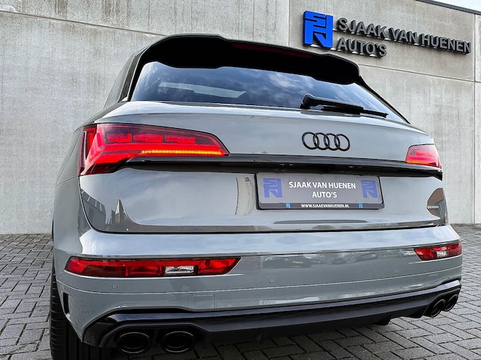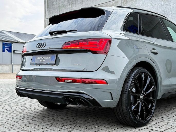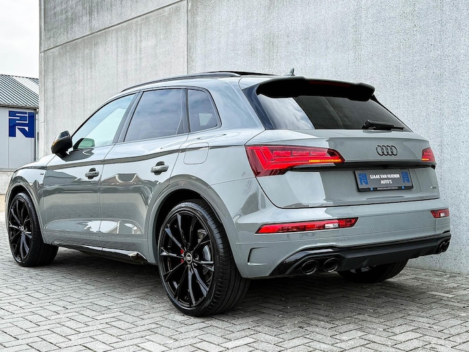 NIEUW MODEL 2023!|Audi Exclusive|S-Line interieur|S-Line exterieur|50 TFSIe Plug in Hybride 220kw/299pk|Quattro 4-wielaandrijving|S-Tronic Automaat|Audi Exclusive Quantum Grey|Panoramisch glazen schuif-/kanteldak|Elektrisch bedienbare zonwering panoramadak|Audi Virtual Cockpit Plus|Airsuspension / Luchtvering - Dynamisch instelbaar onderstel|Zwart Valcona Lederen S kuipstoelen incl. Diamond Cross stitching Grijze stiksels|Elektrisch verstelbare voorstoelen|Elektrisch verstelbare lendensteun|Bestuurdersstoel incl. geheugenfunctie / Memory|Stoelverwarming voor- & achterzijde|Geperforeerd lederen 3-spaaks Afgevlakt S-line Sportstuurwiel incl. Grijze stiksels|Audi Exclusive Alcantara airbag met Grijs stiksel|Rear View / Achteruitrijcamera|Parkeersensoren voor- & achterzijde|Audi Drive Select - Instelbare rijprofielinstellingen|LED dagrijverlichting|HD Matrix OLED koplampen met dynamische lichtanimatie|LED achterlichten|3D Dynamische knipperlichten voor- & achterzijde|Achteruitrijcamera|Cruise Control|Filehulp|Audi Pre Sense|Attention Assist|Grootlichtassist|Voice Control|Elektrisch bedienbare achterklep|Afstandswaarschuwing|Navigatiesysteem MMI Plus|Uitgebreide boordcomputer|Bluetooth|Audi Premium Sound incl. Subwoofer|DAB+ / Digital Audio Broadcasting|Audi Connect Key|APP Connect|Apple CarPlay / Android Auto|Keyless Entry & Keyless GO|19inch LM Audi S-line velgen|*Optioneel: Getoonde 22inch Black Performance velgen|Coming-/Leaving Home|Licht- & Regensensor|Ambiance sfeerverlichting Premium|Climate Control 3-zones|F1 schakelflippers|Spiegelpakket - Elektrisch verwb.-/verstelb. + inklapbare buitenspiegels|Carbonlook interieur pakket|Zwarte hemelbekleding|Automatisch dimmende binnenspiegel & buitenspiegels|Elektrische ramen voor- & achterzijde|Warmtewerende voorruit|Zonneschermen zijruiten|RVS Sportpedalen|RVS instaplijsten incl. LED verlichting|Zwarte Audi emblemen rondom|Black Pack Plus / Zwart optiekpakket|Hoogglans zwarte grille|Hoogglans zwarte raamomlijsting|Hoogglans zwarte Audi emblemen|Hoogglans zwarte buitenspiegels|Audi OEM Design Black SQ5 diffuser + Hoogglans zwarte uitlaat eindstukken|Rode Audi Sport S remklauwen|Privacy Glass|Voorruitverwarming incl. voorklimatisering|Standkachel / Interieurvoorverwarming fabrieksaf|