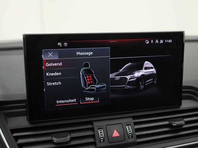 Met zijn elegante vormgeving en aangename interieur omgeving, is deze Audi Q5 in elk opzicht van topklasse, typisch voor echte Duitse auto's. De toekomst is hybride: de combi van elektromotor en verbrandingsmotor maakt deze auto extra aantrekkelijk en voordelig in gebruik. Inladen is een eitje met de elektrisch bedienbare achterklep. En voor een frisse wind tijdens de rit is er het elektrisch bediende glazen panorama dak. De verwarmbare voorstoelen inclusief massagefunctie benadrukken nog maar eens dat we hier te maken hebben met een regelrechte verwenauto. Sportief rijden stelt eisen aan een stevige zitpositie voor rijder en bijrijder. Vandaar de strakke sportstoelen! De matrix LED-verlichting is het allernieuwste op het gebied van autoverlichting. Altijd maximaal licht op de weg, zonder tegenliggers te hinderen! Natuurlijk behoren 20 inch lichtmetalen velgen, warmtewerend glas, in delen neerklapbare achterbank, LED-achterlichten en verwarmde ruitensproeiers ook tot de uitrusting van deze complete auto.