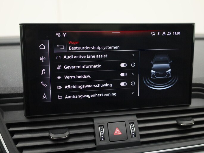 Aan boord van deze Audi houden verschillende geavanceerde systemen voor u de weg in de gaten. Ze waarschuwen u voor noodsituaties en kunnen in een aantal gevallen ook zelf ingrijpen. Bij de veiligheidssystemen van deze Audi hoort ook de verkeersbord-detectie. Die leest tijdens het rijden als het ware met u mee en attendeert u op de significante verkeersborden langs en boven de weg. Onbedoeld buiten de rijstrook raken wordt voorkomen door het Lane-keeping systeem. Veel aanrijdingen bestaan uit kop-staartbotsingen. De forward collision warning reduceert dat risico aanzienlijk. In deze Audi vinden we verder een dodehoekdetectie, hill hold functie, brake assist en bandenspanningcontrolesysteem.