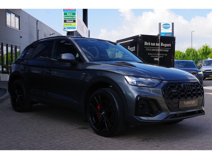 Kijk voor een uitgebreide fotoreportage op onze site. Dit betreft een zeer nette en goed uitgeruste Audi Q5 met talrijke mooie opties zoals: panoramadak, matrix-LED, etc. Alle historie is aanwezig. 57.950,- euro betreft een scherpe, rijklare basisprijs. De prijs inclusief nieuwe APK, onderhoudsbeurt indien nodig en twaalf maanden BOVAG garantie komt uit op 59.200,- euro. Inruil is geen enkel probleem. Heeft u interesse en wilt u ons bezoeken? Om ervoor te zorgen dat we voldoende tijd voor u hebben, vragen we u om een afspraak te maken voordat u langskomt. Dit helpt ons om u zo goed mogelijk van dienst te zijn. De koffie staat klaar. De Audi wordt standaard geleverd op de originele 19 inch lichtmetalen velgen, indien u ervoor kiest de auto te kopen met de getoonde 21 inch lichtmetalen velgen en banden kost dit 2.250,- euro extra. **Wij doen ons uiterste best om de informatie van onze advertenties zo correct en actueel mogelijk weer te geven. Aan bovenstaande informatie kunnen echter geen rechten worden ontleend. Controleer daarom samen met ons de aanwezige opties en accessoires op de auto van uw keuze.**