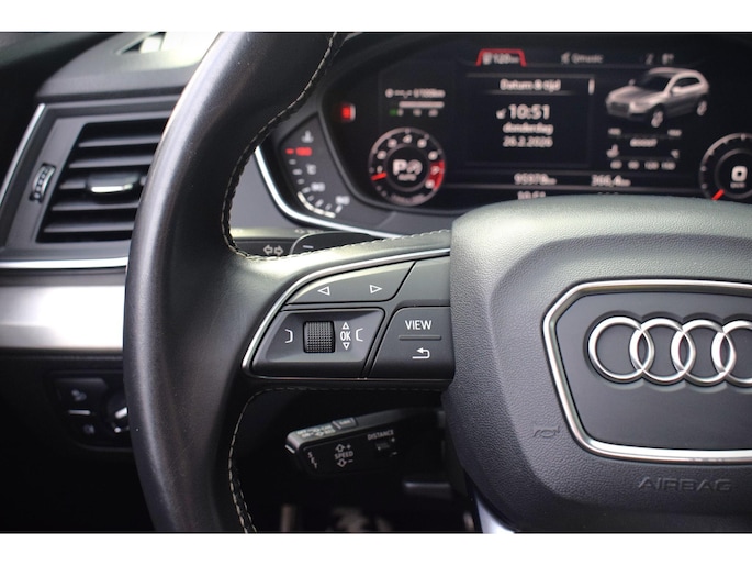 Het digitale dashboard ondersteunt u voortdurend met actuele, bruikbare informatie. Met adaptive cruise control houdt de auto zelfstandig afstand tot uw voorligger. Een veiligheidsverhogende optie waarmee u comfortabel onderweg bent. Loopt het verkeer onderweg vast, schakel dan de file assistent in en laat het systeem zorgen voor de juiste afstand bij stilstaan en rijden. Als belangrijke extra geldt zonder twijfel het high performance audiosysteem met topkwaliteit geluidsweergave. Elke weg is een bekende weg voor het aanwezige navigatiesysteem met harde schijf. Ook is de Audi uitgerust met: WIFI-hotspot, automatische airconditioning, sportstuur met schakelpaddels, parkeersensoren achter, regensensor en automatisch dimmende binnenspiegel.
