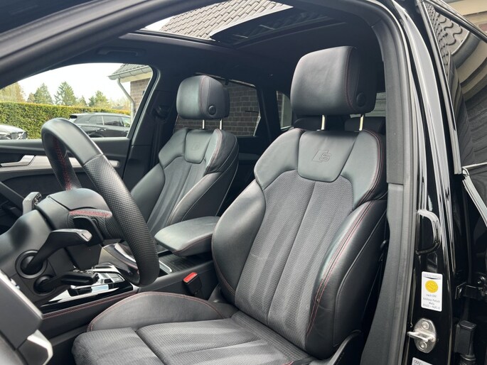 Exterieur: S Line exterieur pakket, Mythoszwart metallic, 21 Inch lichtmetalen wielen Audi sport, Elektrisch inklapbare buitenspiegels, Elektrisch inklapbare en verstelbare buitenspiegels, Luchtvering, Verwarmde buitenspiegels, elektrisch te openen en te sluiten panoramadak, warmte werend donker glas, Zwart optiek pakket (Audi Exclusive)