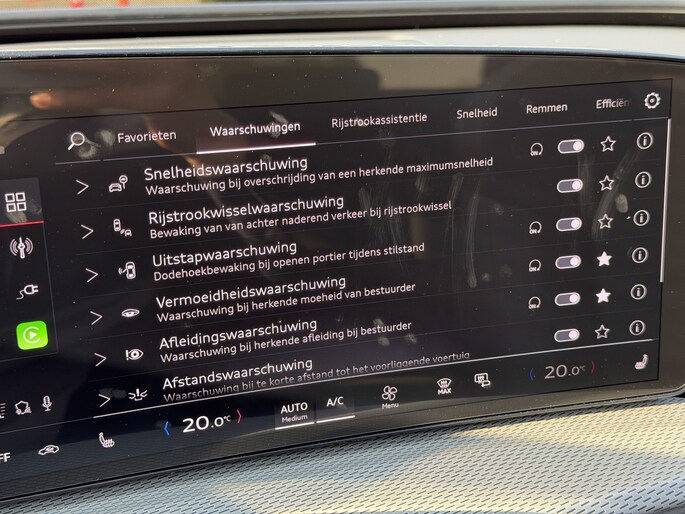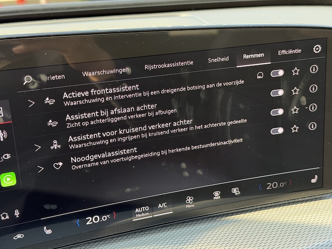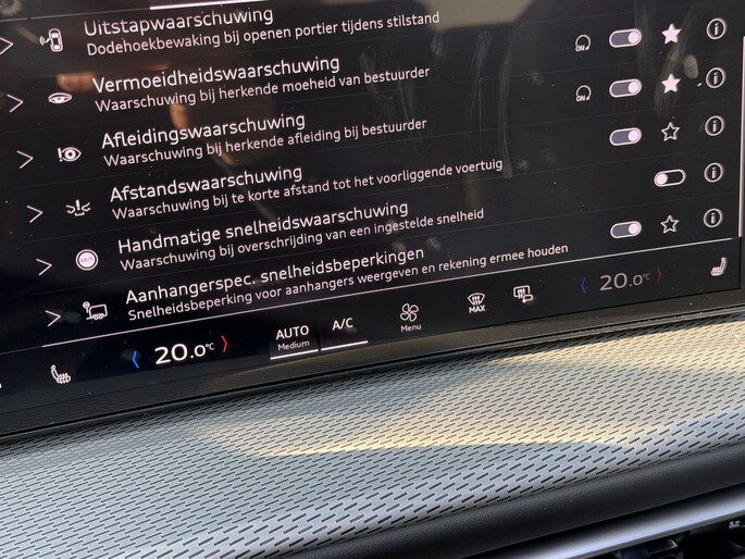 De geavanceerde technologie in deze Audi is in staat om onderweg het verkeer om u heen te monitoren en er op te reageren. Zo hebt u als het ware een automatische co-piloot aan boord. Bij de veiligheidssystemen van deze Audi hoort ook de verkeersbord-detectie. Die leest tijdens het rijden als het ware met u mee en attendeert u op de significante verkeersborden langs en boven de weg. Ongemerkt buiten de rijstrook raken? Nee hoor, het Lane-keeping systeem waarschuwt en corrigeert. De actieve dodehoekdetectie voorkomt dat u een voertuig over het hoofd ziet en waarschuwt tijdig. In deze Audi vinden we verder een forward collision warning system, vermoeidheidsherkenning, autonoom remsysteem en bandenspanningcontrolesysteem.