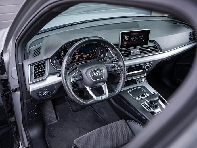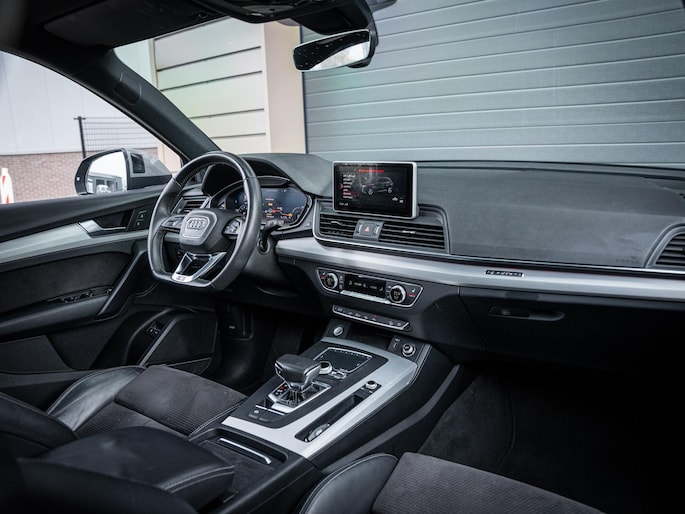 Deze schitterende Audi Q5 is uitgevoerd in het stijlvolle Quantum Grey, een kleur die het krachtige en elegante design perfect benadrukt. Het betreft een zeer compleet uitgevoerde auto waarbij vrijwel het volledige optiepakket is aangevinkt, een ideale combinatie van luxe, comfort en praktische functionaliteit.