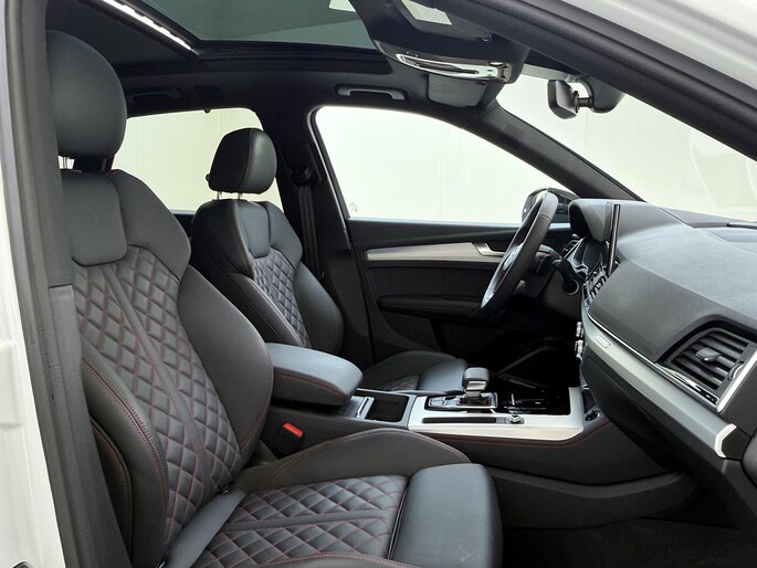 Met zijn dynamische eigenschappen belooft deze Audi Q5 u een heleboel rijplezier. Hij is ontwikkeld op een geavanceerd onderstel en biedt altijd een veilig weggedrag. Deze auto wíl gewoon gezien worden: kijk maar naar de sportieve S-Line styling. Hoewel de auto uit 2025 komt, heeft hij maar 9067 kilometer gereden. De hybride motor van deze Audi Q5 zorgt dat u opvallend veel minder brandstof verbruikt dankzij de ondersteuning van de elektromotor met z'n eigen accu. En die laadt u al rijdend bij. Slim en zuinig! Zelfs een oude klinkerstraat voelt aan als een biljartlaken dankzij de luchtvering. Het gevoel van luxe is inbegrepen dankzij het lederen interieur. Deze Audi Q5 legt bestuurder én bijrijder compleet in de watten met de verwarmbare voorstoelen. Zijwaartse g-krachten worden solide opgevangen door de sportstoelen. Licht en lucht komen onbelemmerd binnen als het elektrisch bediende glazen panoramadak met één druk op de knop wordt geopend. De achterklep opent automatisch met een druk op de knop. Handig als u met volle handen staat. In deze Audi profiteert u onder andere ook van: LED matrix verlichting, warmtewerend glas, in delen neerklapbare achterbank, LED-achterlichten en verwarmde ruitensproeiers.