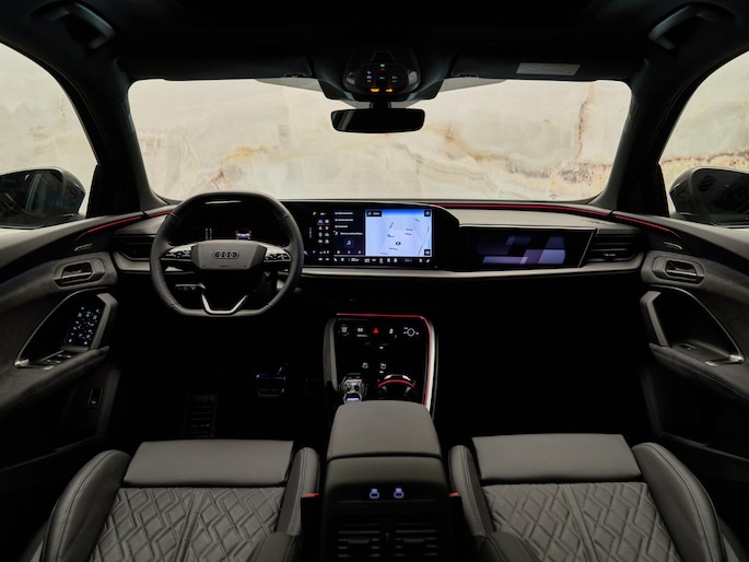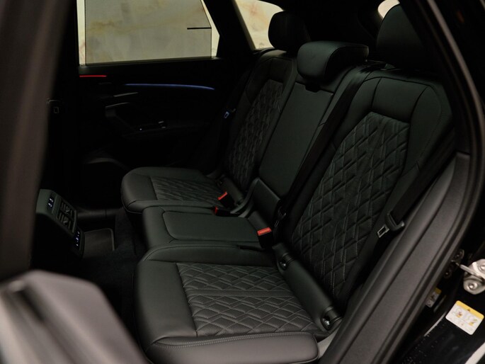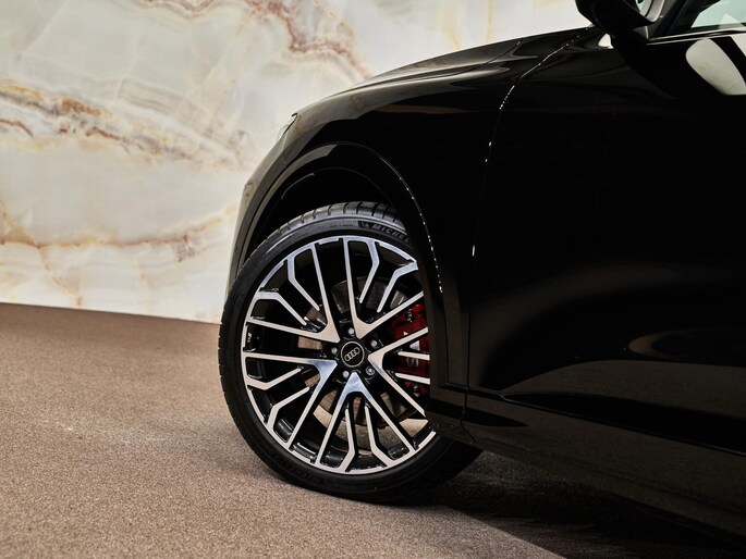 De Audi Sport multispaak-S velgen 21” (53A), gecombineerd met Mythoszwart metallic (0E0E) en carbon decorlijsten met micro-twill structuur (5MK), geven deze Q5 een sportieve uitstraling. Het S-interieurpakket (PWO) met sportstoelen in geperforeerd leder met ruitstiksels en ambient lighting zorgen voor een luxe ambiance.