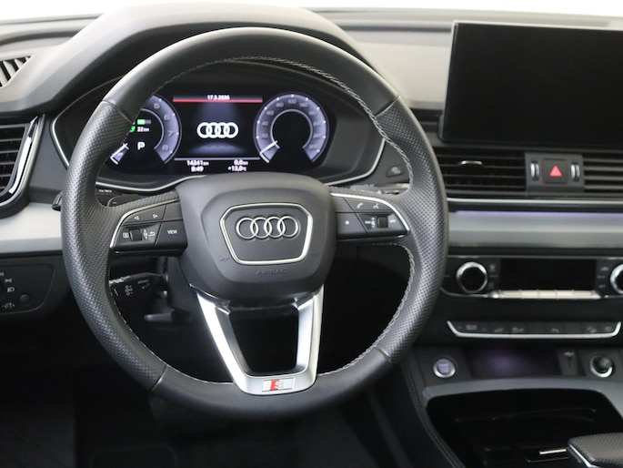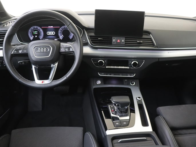Soepel rijgedrag, een krachtige acceleratie en een laag brandstofverbruik, de hybride Audi Q5 is een innovatieve auto. Voor liefhebbers van rijplezier is de S-Line styling een belangrijke reden om voor deze auto te kiezen. Deze auto is bijna nieuw, ondanks dat hij uit 2021 komt; hij heeft slechts 14238 kilometer afgelegd. Een solide hybride: zowel een elektromotor als een verbrandingsmotor voor maximaal rijplezier en minimale milieubelasting. Wat bij sommige auto's pure luxe is, heeft deze gewoon aan boord: het elektrisch bediende glazen panorama dak en de elektrisch bedienbare achterklep. De sportstoelen houden u en uw bijrijder goed op z'n plek tijdens het accelereren en bij het nemen van scherpe bochten. Luchtgeveerde wielophanging zorgt voor topklasse comfort op alle soorten wegdek. De verlichting van de koplampen geeft het gevoel dat het altijd dag is. De slimme matrix LED-technologie past zich aan bij tegenliggers, zonder verlies van lichtkwaliteit. Natuurlijk behoren 19 inch lichtmetalen velgen, adaptief dempingsysteem, warmtewerend glas, in delen neerklapbare achterbank, LED-achterlichten en verwarmde ruitensproeiers ook tot de uitrusting van deze complete auto.