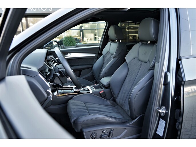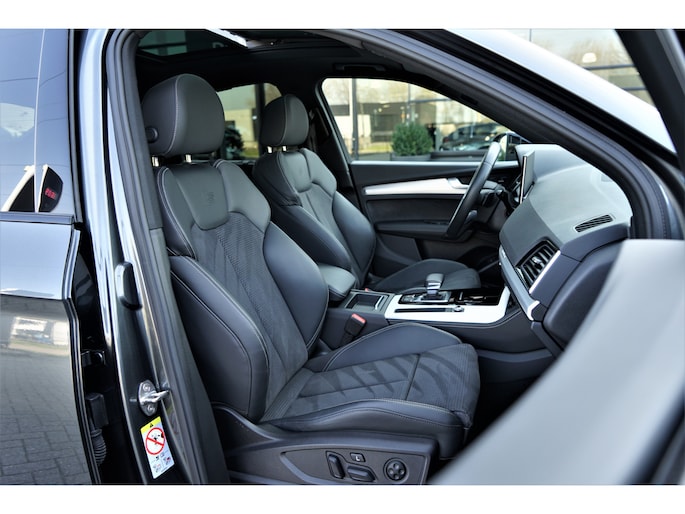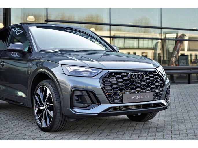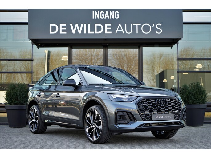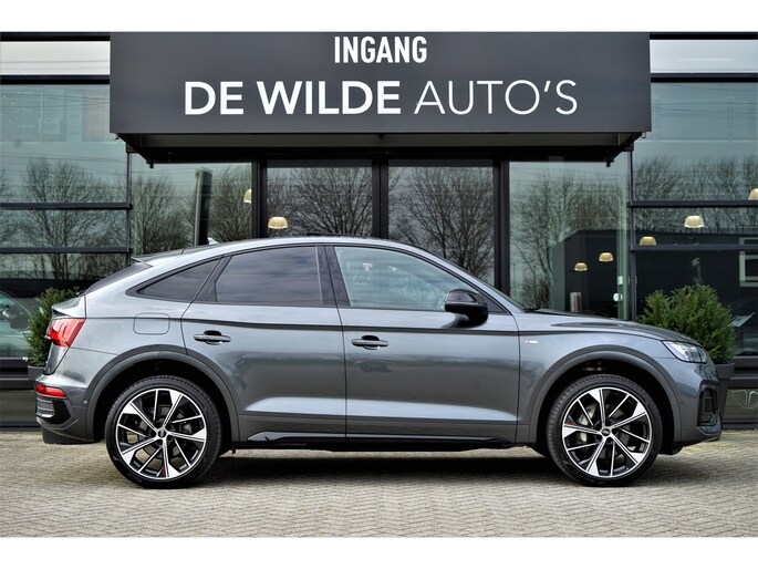 Audi Q5 sportback 55 TFSI e Quattro S-line in de kleur 'Daytonagrijs metallic'. De auto is compleet Audi dealer onderhouden en heeft slechts één eigenaar gehad.