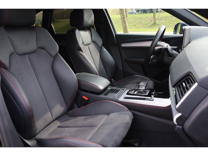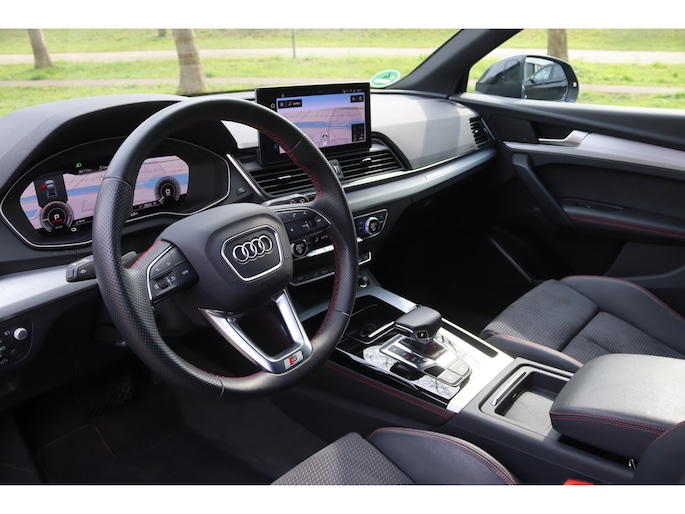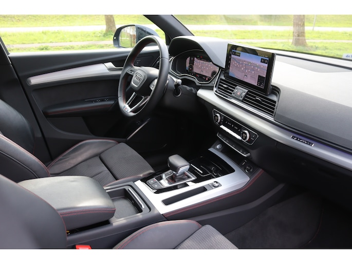 Dealeronderhouden facelift Audi Q5 met de krachtige en zuinige 50 TFSI e Plugin-hybride motor met een gecombineerd vermogen van 220kW/300pk en quattro aandrijving. In de zeer luxe en sportieve S Edition uitvoering met het S-Line interieur en S-Line exterieur, luchtvering, Optiek zwart Plus pakket, Red pakket (rode sticksels interieur) en de originele rode remzadels. Daarnaast zeer veel opties, onder andere: Matrix LED verlichting met dynamische knipperlichten, virtual cockpit, MMI navigatie plus, Head-up display, Keyless entry/start, stoelverwarming, parkeersensoren voor en achter met de originele achteruitrijcamera, App-Connect (Apple CarPlay/Android), adaptieve cruise control, automatisch dimmende binnenspiegel en buitenspiegels, buitenspiegels elektrisch inklapbaar, elektrische achterklep, DAB radio, 3-zone climate control en de originele 19" lichtmetalen velgen Audi Sport. Deze Q5 wordt geleverd inclusief 12 maanden BOVAG garantie, zonder meerprijs.