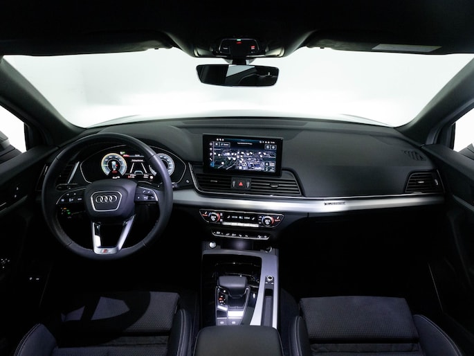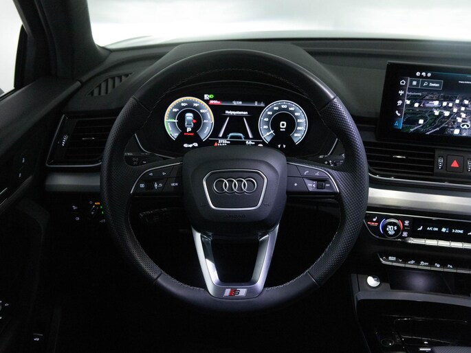 Duitse auto's blijven onveranderd vertegenwoordigd in de top van wereldmerken. En dat is geen toeval. Lekker sportief en een tikkie stoer: de S-Line styling geeft een hele dynamische uitstraling. Op de teller van deze auto staat slechts 2733 kilometer. Hybride rijden is de ideale middenweg. Deze Audi Q5 biedt die mogelijkheid. Goedkoper rijden, schoner rijden en zo nodig over op benzine. De ideale combi! Ga samen met je bijrijder lekker zitten in de verwarmbare voorstoelen. Natuurlijk zijn de sportstoelen super functioneel als het rechterpedaal ingetrapt wordt. Maar ook voor het uiterlijk doen ze veel! Een handige voorziening op deze auto is de elektrische achterklep die je op afstand kunt openen. Met matrix LED-verlichting rijd je eigenlijk altijd met groot licht, dus maximaal zicht. Toch is verblinden er niet bij, want het systeem regelt de verlichting zo dat tegenliggers er geen last van hebben. Ook 20 inch lichtmetalen velgen, warmtewerend glas, in delen neerklapbare achterbank, LED-achterlichten en verwarmde ruitensproeiers horen tot de voorzieningen op deze auto.