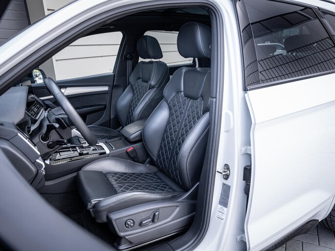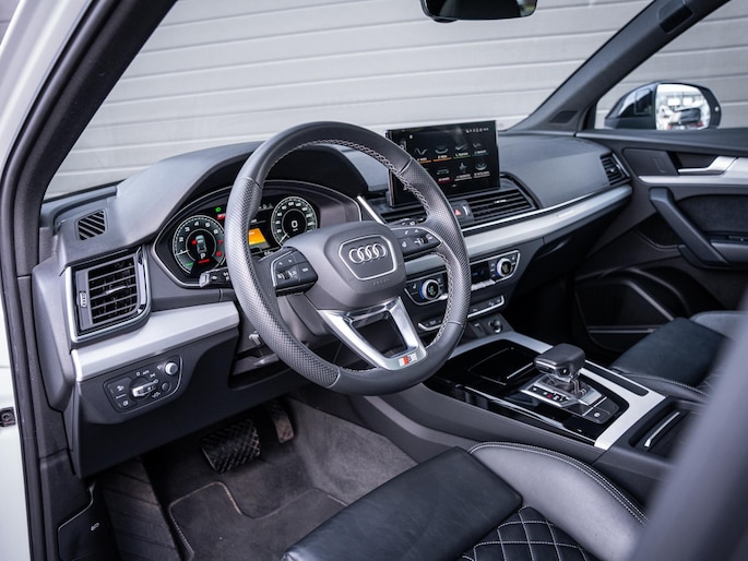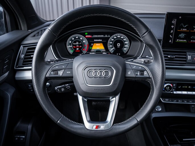 Qua technologie en comfort is deze Q5 zeer rijk uitgerust. Zo beschikt de auto over adaptive cruise control, een volledig digitaal Virtual Cockpit, head-up display en een hoogwaardig Bang & Olufsen geluidssysteem. Daarnaast zijn voorzieningen zoals Apple CarPlay, elektrisch verstelbare stoelen, stoelverwarming en een draadloze telefoonlader aanwezig. Ook aan veiligheid is gedacht, met onder andere dodehoekdetectie en diverse assistentiesystemen.