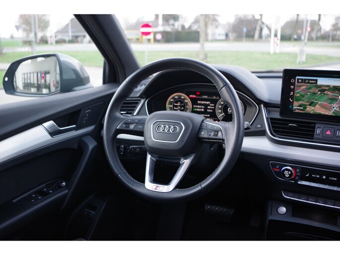 Kijk voor een uitgebreide fotoreportage op onze site. Dit betreft een zeer nette en goed uitgeruste Audi Q5 met talrijke mooie opties zoals: panoramadak, adaptieve cruise control, etc. Alle historie is aanwezig. 51.450,- euro betreft een scherpe, rijklare basisprijs. De prijs inclusief nieuwe APK, onderhoudsbeurt indien nodig en twaalf maanden BOVAG garantie komt uit op 52.700,- euro. Inruil is geen enkel probleem. Heeft u interesse en wilt u ons bezoeken? Om ervoor te zorgen dat we voldoende tijd voor u hebben, vragen we u om een afspraak te maken voordat u langskomt. Dit helpt ons om u zo goed mogelijk van dienst te zijn. De koffie staat klaar. De Audi wordt standaard geleverd op de originele 19 inch lichtmetalen velgen, indien u ervoor kiest de auto te kopen met de getoonde 21 inch lichtmetalen velgen en banden kost dit 2.250,- euro extra. **Wij doen ons uiterste best om de informatie van onze advertenties zo correct en actueel mogelijk weer te geven. Aan bovenstaande informatie kunnen echter geen rechten worden ontleend. Controleer daarom samen met ons de aanwezige opties en accessoires op de auto van uw keuze.**