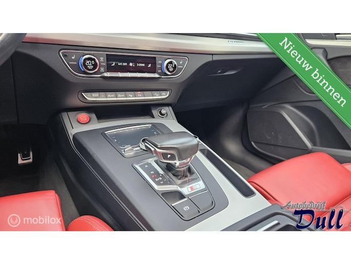 Bij het ontwerpen van de Audi SQ5 stonden uw comfort en uw veiligheid centraal. Met de S-Line styling mag deze auto zeker gezien worden. Een zescilinder benzinemotor en een automatische transmissie zorgen samen voor een snelle en comfortabele rijervaring. Maximaal comfort en stijl krijgt u dankzij het rode nappa lederen interieur. 's Winters komen de verwarmbare voorstoelen heerlijk van pas. Altijd een goede zitpositie bij iedere snelheid, dankzij de sportstoelen. Voor extra lichtinval en een frisse luchtstroom zorgt het elektrisch bediende panoramadak. Verder is de Audi uitgerust met: 21 inch lichtmetalen velgen, LED koplampen, sportonderstel, warmtewerend glas, dakspoiler en in delen neerklapbare achterbank.