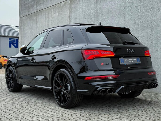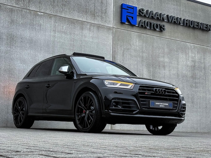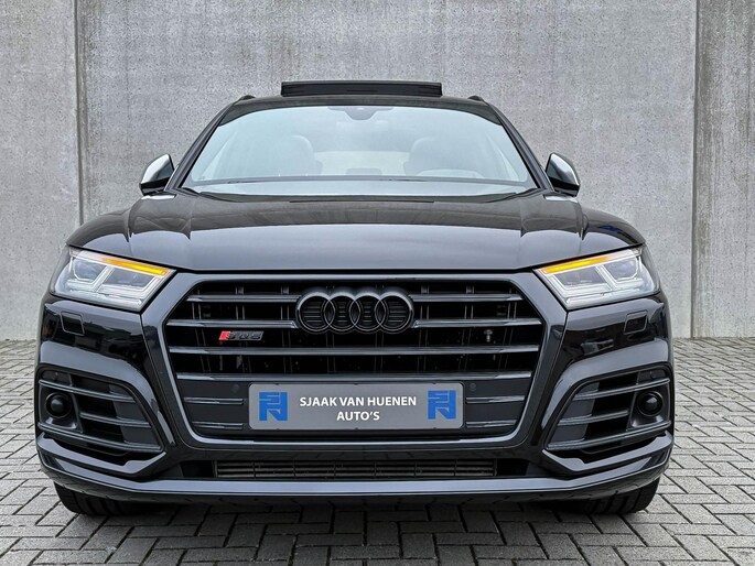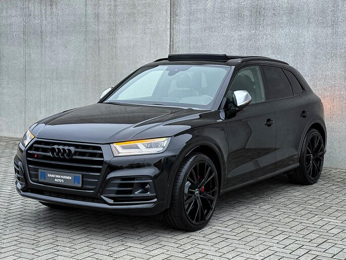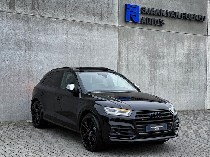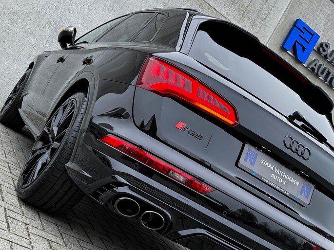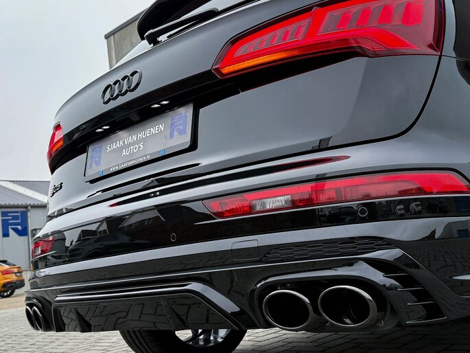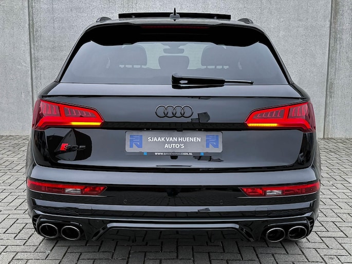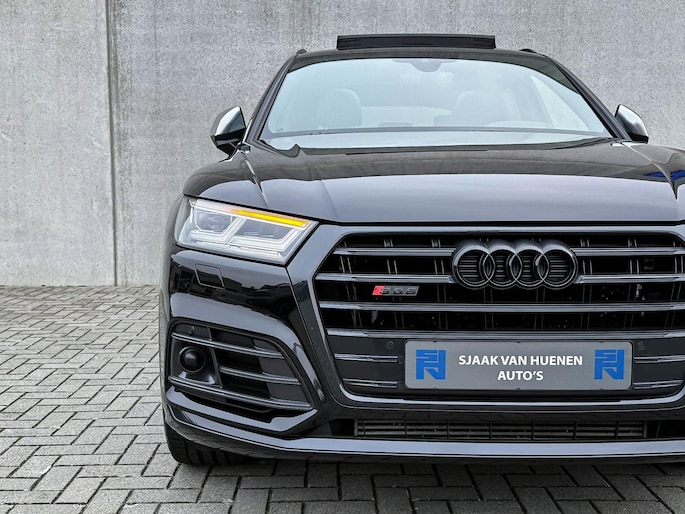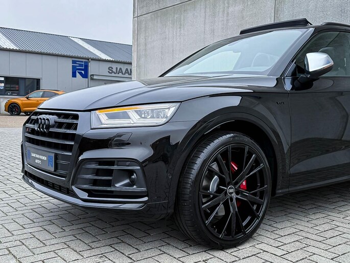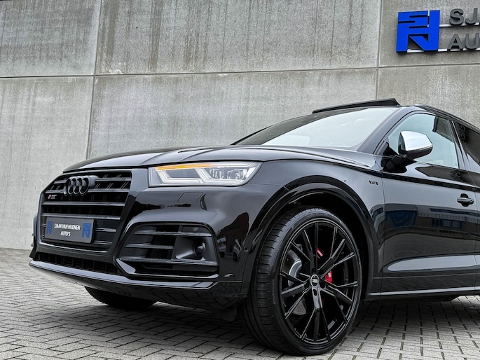 Voorzien van prachtige opties zoals: NIEUW MODEL 2018!|Audi Exclusive|Mythos Black Pearl Metallic|S/ RS-Interieur|S/ RS-Exterieur|3.0TFSI V6 Quattro 354pk / 500Nm|Quattro 4-wielaandrijving|S-Tronic Automaat 8-traps|Panoramisch glazen schuif-/kanteldak|Elektrisch bedienbare zonwering panoramadak|Audi Virtual Cockpit Plus|Audi Magnetic Ride/ Adaptieve dempingssysteem - instelbare onderstel|Zwart Valcona Lederen S kuipstoelen incl. Diamond Cross stitching Grijze stiksels|Elektrisch verstelbare voorstoelen|Elektrisch verstelbare lendensteun|Bestuurdersstoel incl. geheugenfunctie / Memory|Stoelverwarming voor- & achterzijde|Lederen 3-spaaks Afgevlakte SQ5 Sportstuurwiel incl. Grijze stiksels|Audi Exclusive Alcantara airbag met Grijs stiksel|Rear View / Achteruitrijcamera|Parkeersensoren voor- & achterzijde|Parkassist / Automatisch inparkeersysteem|Audi Drive Select - Instelbare rijprofielinstellingen|LED dagrijverlichting|HD Matrix OLED koplampen met dynamische lichtanimatie|LED achterlichten|3D Dynamische knipperlichten voor- & achterzijde|ACC / Adaptieve Cruise Control|Filehulp|HUD / Head Up Display|Audi Pre Sense|Attention Assist|Grootlichtassist|Voice Control|Qi inductief / draadloos opladen smartphone|Elektrisch bedienbare achterklep|Afstandswaarschuwing|Navigatiesysteem MMI Plus|Uitgebreide boordcomputer|Bluetooth|B&O / Bang & Olufsen 3D Surround soundsysteem incl. Subwoofer|DAB+ / Digital Audio Broadcasting|Audi Connect|APP Connect|Keyless Entry & Keyless GO|19inch LM Audi S-line velgen|*Optioneel: Getoonde 22inch Black Performance velgen|Coming-/Leaving Home|Licht- & Regensensor|Ambiance sfeerverlichting Premium|Climate Control 3-zones|F1 schakelflippers|Spiegelpakket - Elektrisch verwb.-/verstelb. + inklapbare buitenspiegels|Carbonlook interieur pakket|Zwarte hemelbekleding|Automatisch dimmende binnenspiegel & buitenspiegels|Elektrische ramen voor- & achterzijde|Akoestisch geisoleerde zijruiten|Warmtewerende voorruit|RVS SQ5 Sportpedalen|RVS SQ5 instaplijsten incl. LED verlichting|Zwarte Audi emblemen rondom|Zwarte dakrailing|Black Pack Plus / Zwart optiekpakket|Hoogglans zwarte grille|Hoogglans zwarte raamomlijsting|Hoogglans zwarte Audi emblemen|OEM authentieke Mat Aluminium buitenspiegels|Audi SQ5 ABT Style diffuser + Hoogglans zwarte uitlaat eindstukken|Rode Audi Sport RS S-Remklauwen|Privacy Glass|Thermo-bekerhouder/ verwarmde & gekoelde bekerhouder|Elektrisch wegklapbare trekhaak fabrieksaf|