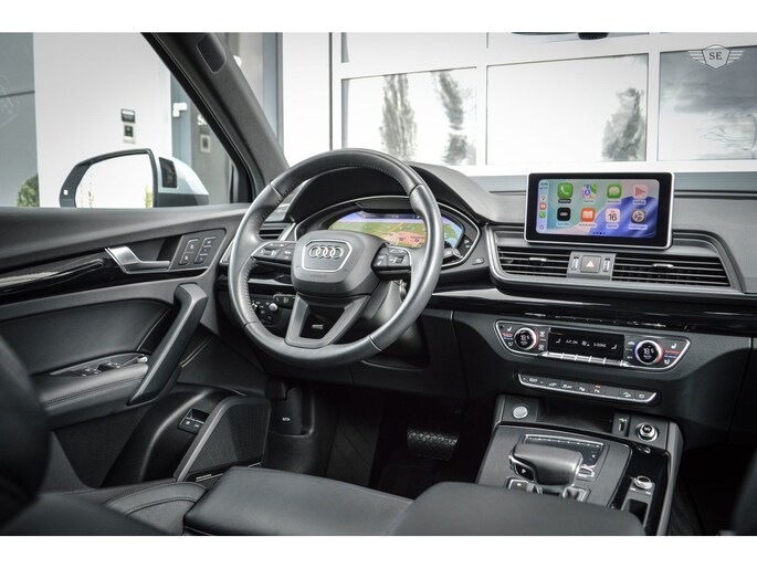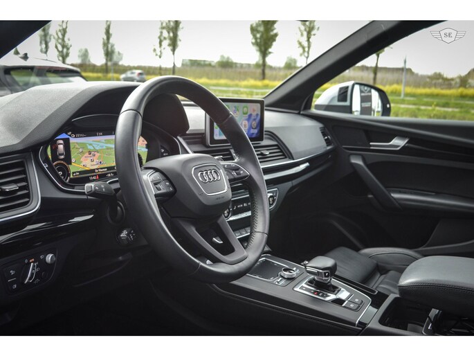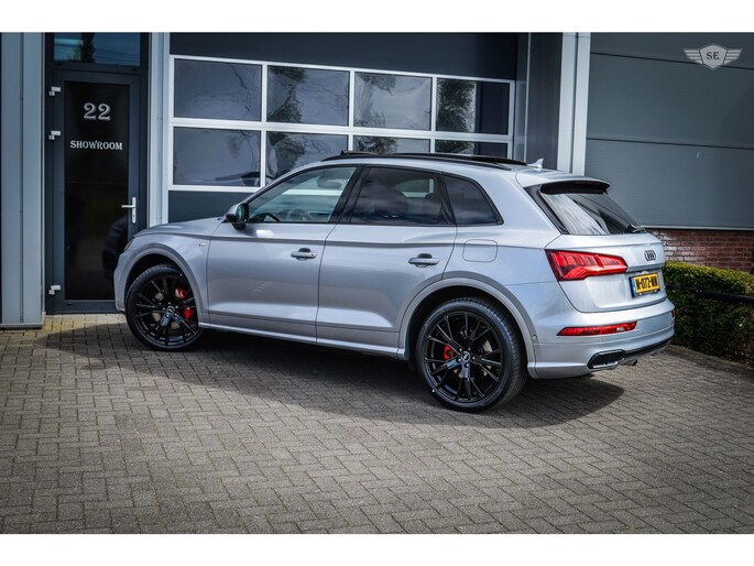 AUDI Q5, 55TFSIe, 367PK, QUATTRO, COMPETITION, FULL OPTIONS, BLACK-OPTIC. De Audi verkeerd in nette staat en is voorzien van de meest denkbare luxe opties, waaronder: Ledmatrix koplampen, Panoramadak, B&O audio, Headup display, Virtual cockpit, Luchtvering, Adaptive cruise control, 360graden camera, Lederen stoelen en elektrische verstelbaar, Stuurwielverwarming, Memory in bestuurdersstoel, Carplay, Ambient Interieurverlichting verstelbaar in kleuren, Stoelverwarming, Stoelventilatie/verkoeling, Verwarmde achterbank, Climate control 3-zones, Verwarmde bekerhouder, Verkoelde bekerhouder, Parkeersensoren, Parkeerassistent, Dodehoekherkenning, Afneembare trekhaak, 21inch Velgen, Lane Assist, Elektrische inklapbare spiegels, Keyless. etc....